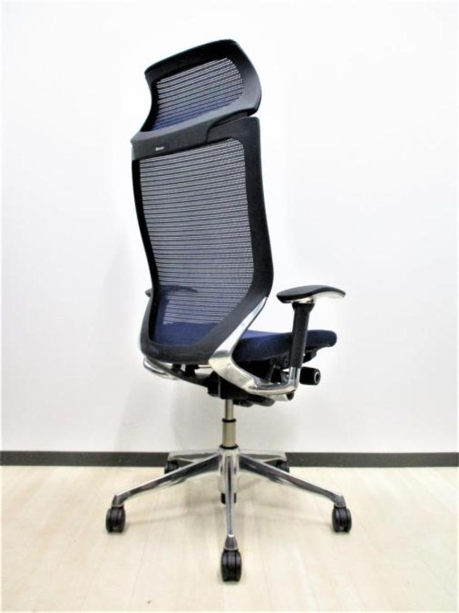 【オフィスの執務室、会議室におすすめ!】■オカムラ(okamura)製 バロン(Baron)チェア 肘付き ハイバック 背面メッシュ ■可動肘 ■ダークブルー × ホワイトシェル【硬めの座面が大人気!国産メッシュチェアの代表格!】【状態良好品!】