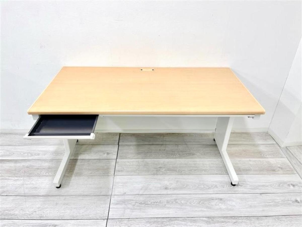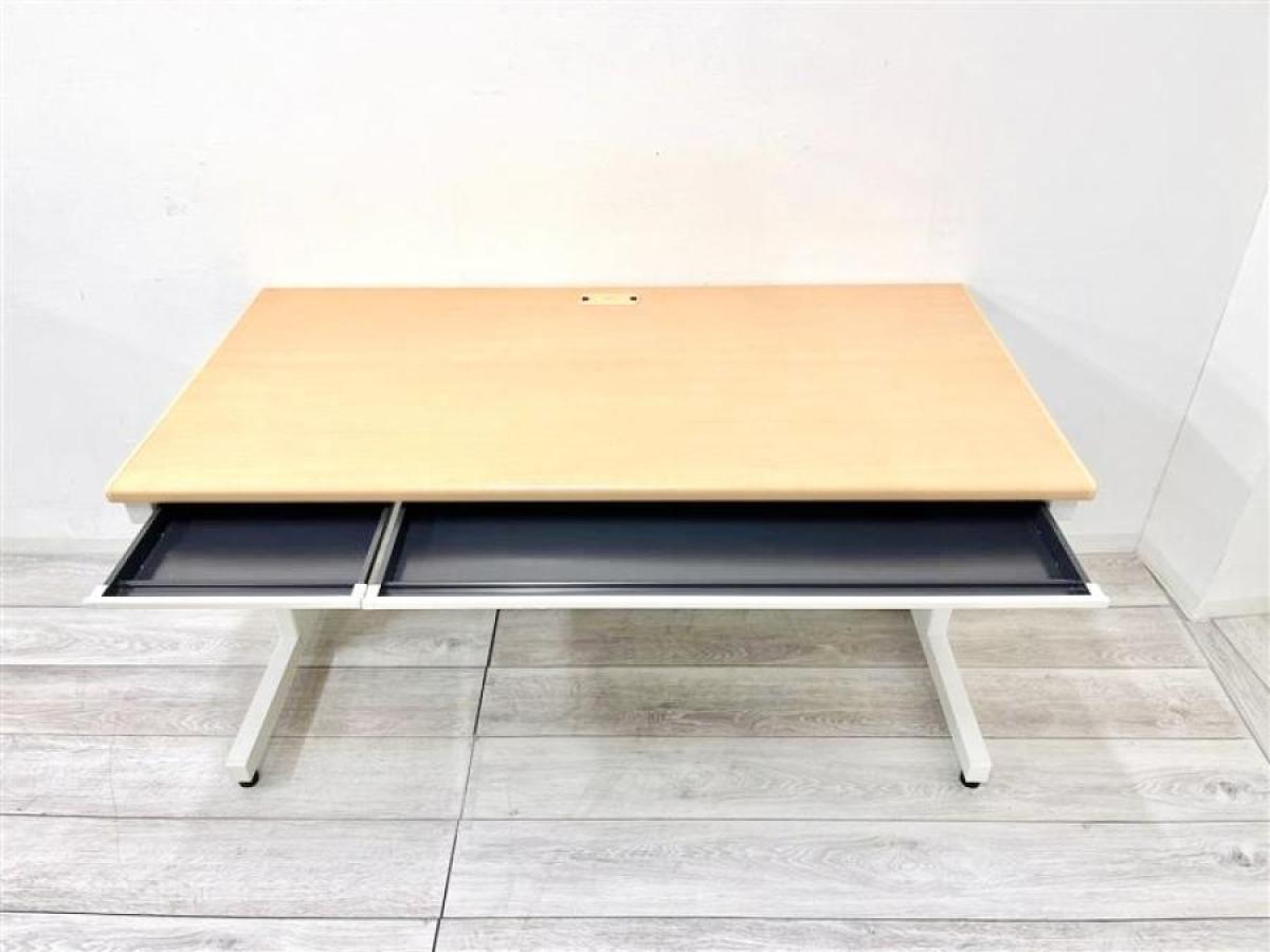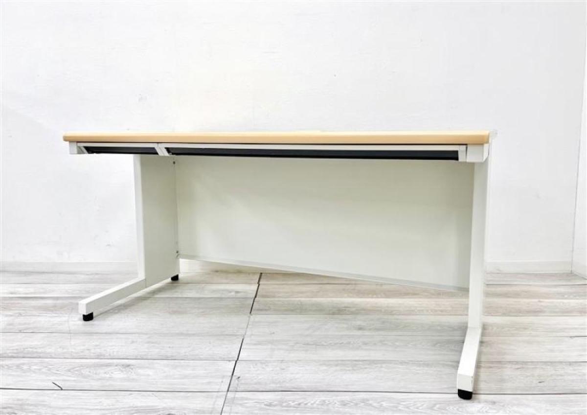 【定価約5万円】【作業効率アップにおすすめ!広々幅1400㎜サイズの平机!】■プラス(PLUS)製 フラットラインシリーズ 平机 引き出し付き ■1400×D700×H700㎜ ■木目調ナチュラル天板 本体 ホワイト