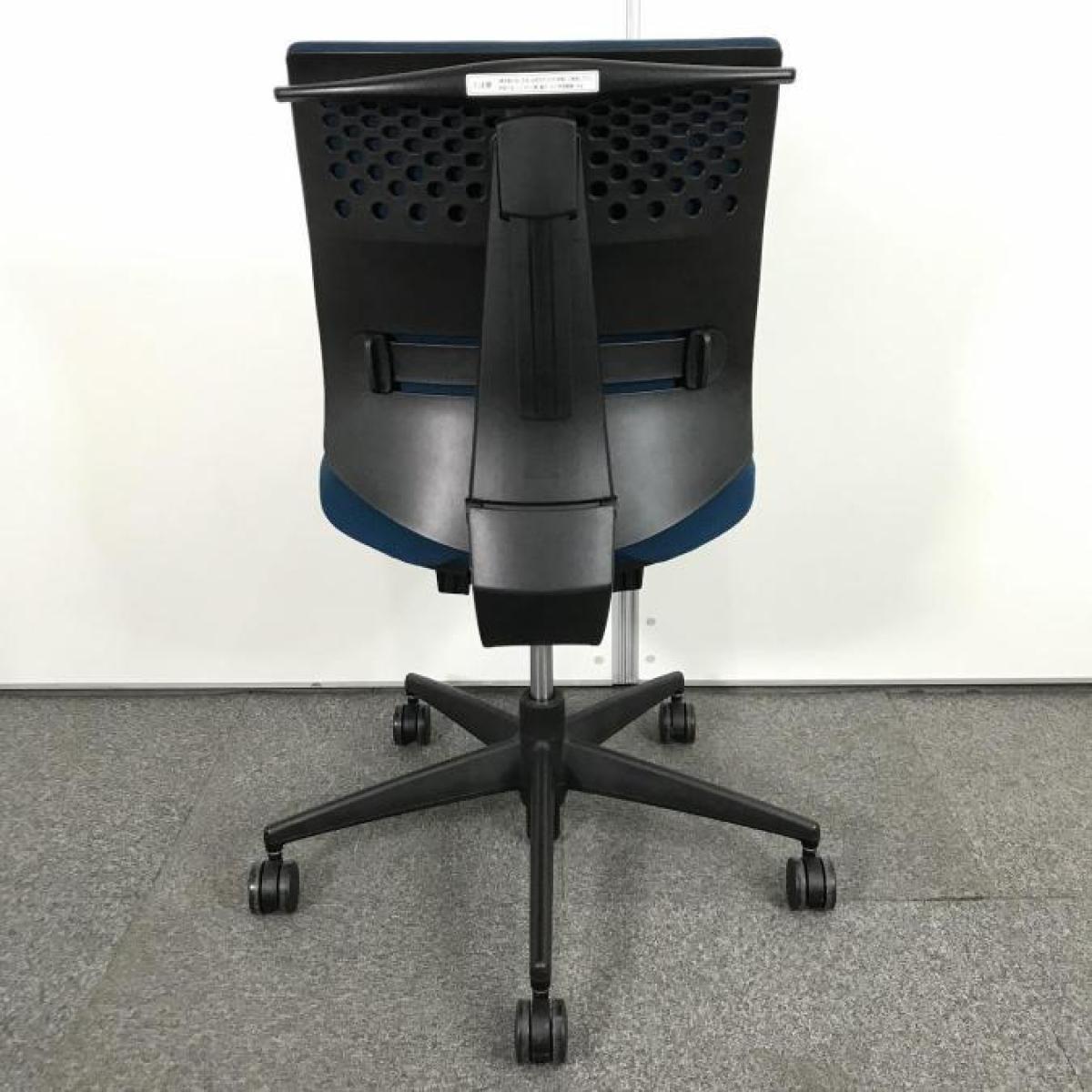 コクヨ ウィザード2 ローバック プルシアンブルー×ブラックフレーム 肘無しモデル コートハンガー付き 定番の使いやすいチェア オフィスバスターズ梅田本店