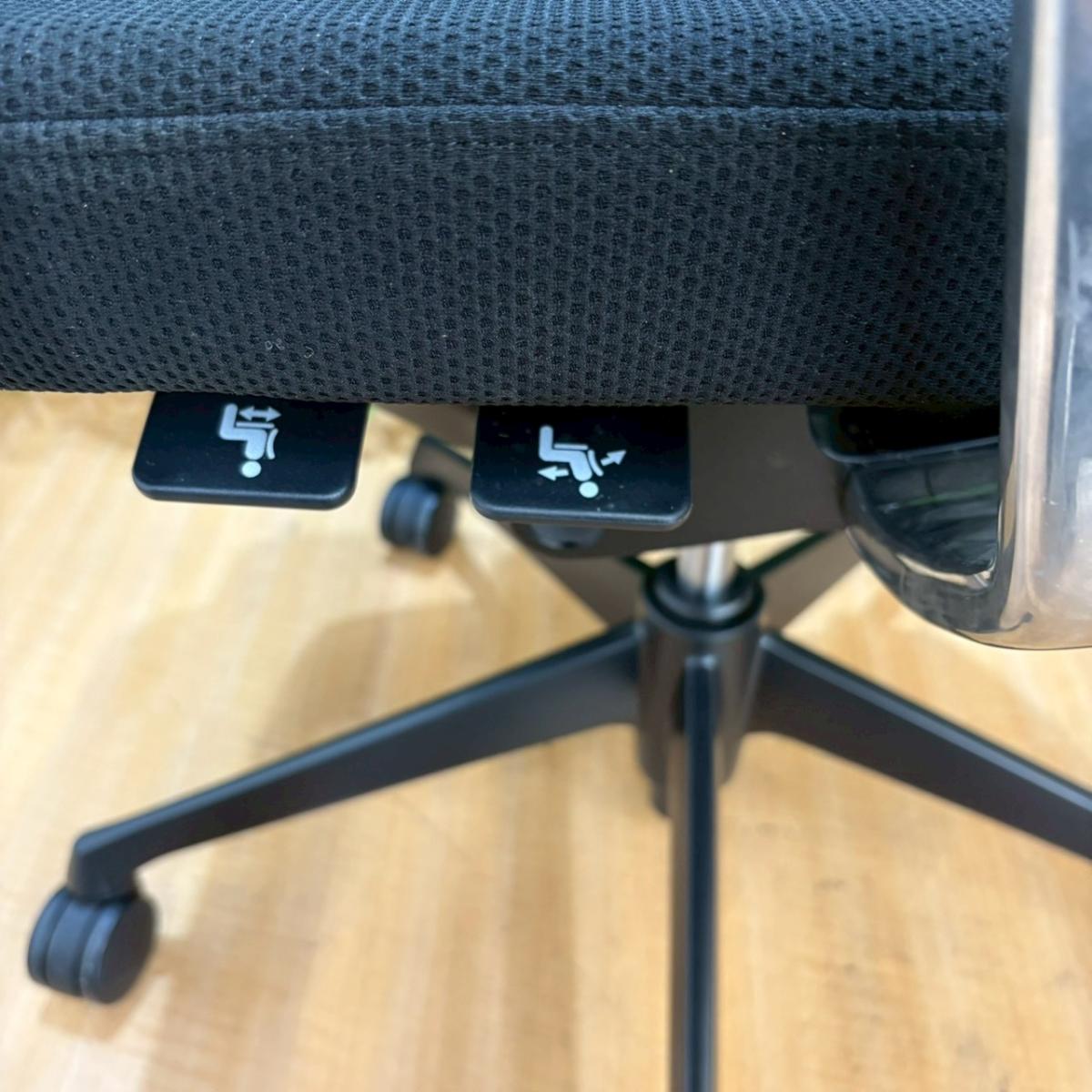 座面の高さや前後などの基本的な調整レバーが座面裏の前方に集約されており、姿勢を変えずに調節ができます。