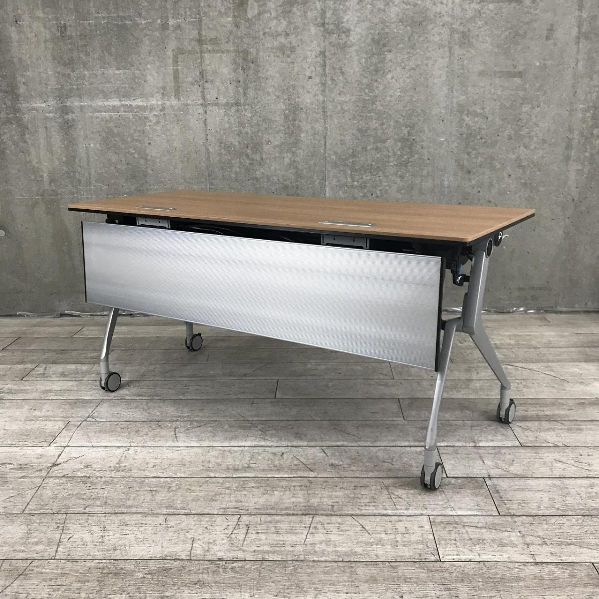 【折りたたみ収納が秀逸!スタイリッシュなデザインで高品質!】■オカムラ(okamura)製 インターアクトNT(INTER ACTNT) サイドスタックテーブル W1500×D600×H720mm ■コンセント付き ■幕板/キャスター付 ■木目調ナチュラル天板【2508】弊社使用欄【A01032321】- 埼玉本店