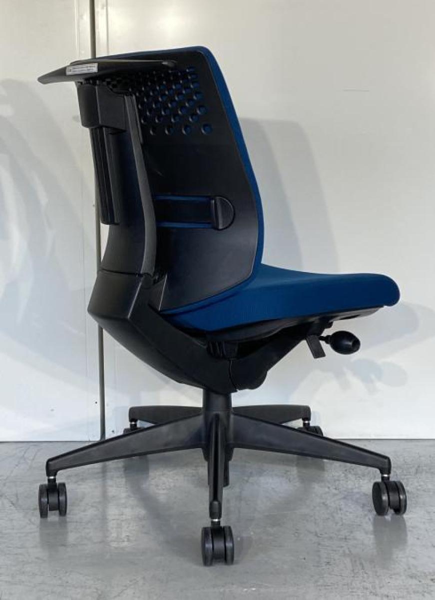 コクヨ ウィザード2 ローバック プルシアンブルー×ブラックフレーム 肘無しモデル コートハンガー付き 定番の使いやすいチェア オフィスバスターズ梅田本店