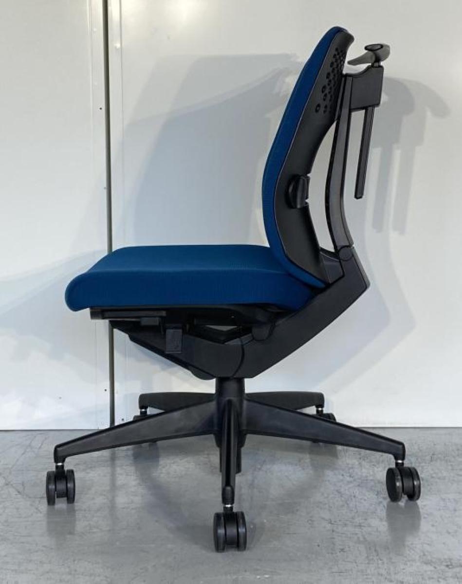 コクヨ ウィザード2 ローバック ロングセラーシリーズ プルシアンブルー×ブラックフレーム 肘無しモデル 定番の使いやすいチェア