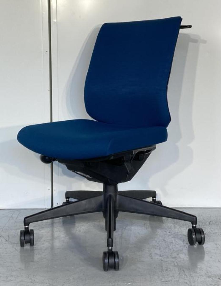 コクヨ ウィザード2 ローバック ロングセラーシリーズ プルシアンブルー×ブラックフレーム 肘無しモデル 定番の使いやすいチェア