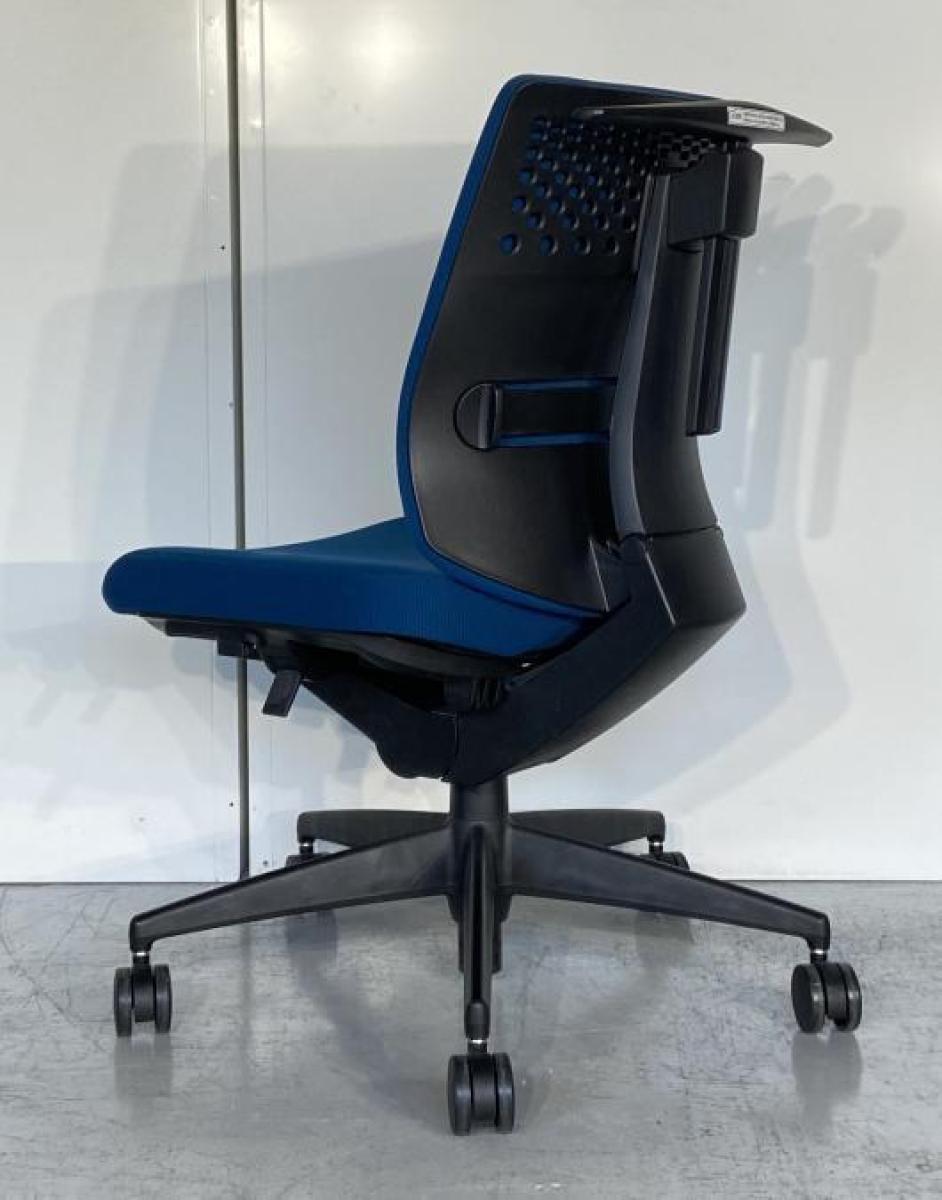 コクヨ ウィザード2 ローバック プルシアンブルー×ブラックフレーム 肘無しモデル コートハンガー付き 定番の使いやすいチェア オフィスバスターズ梅田本店