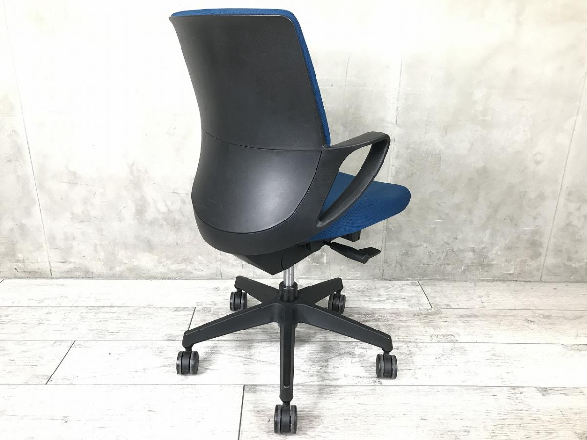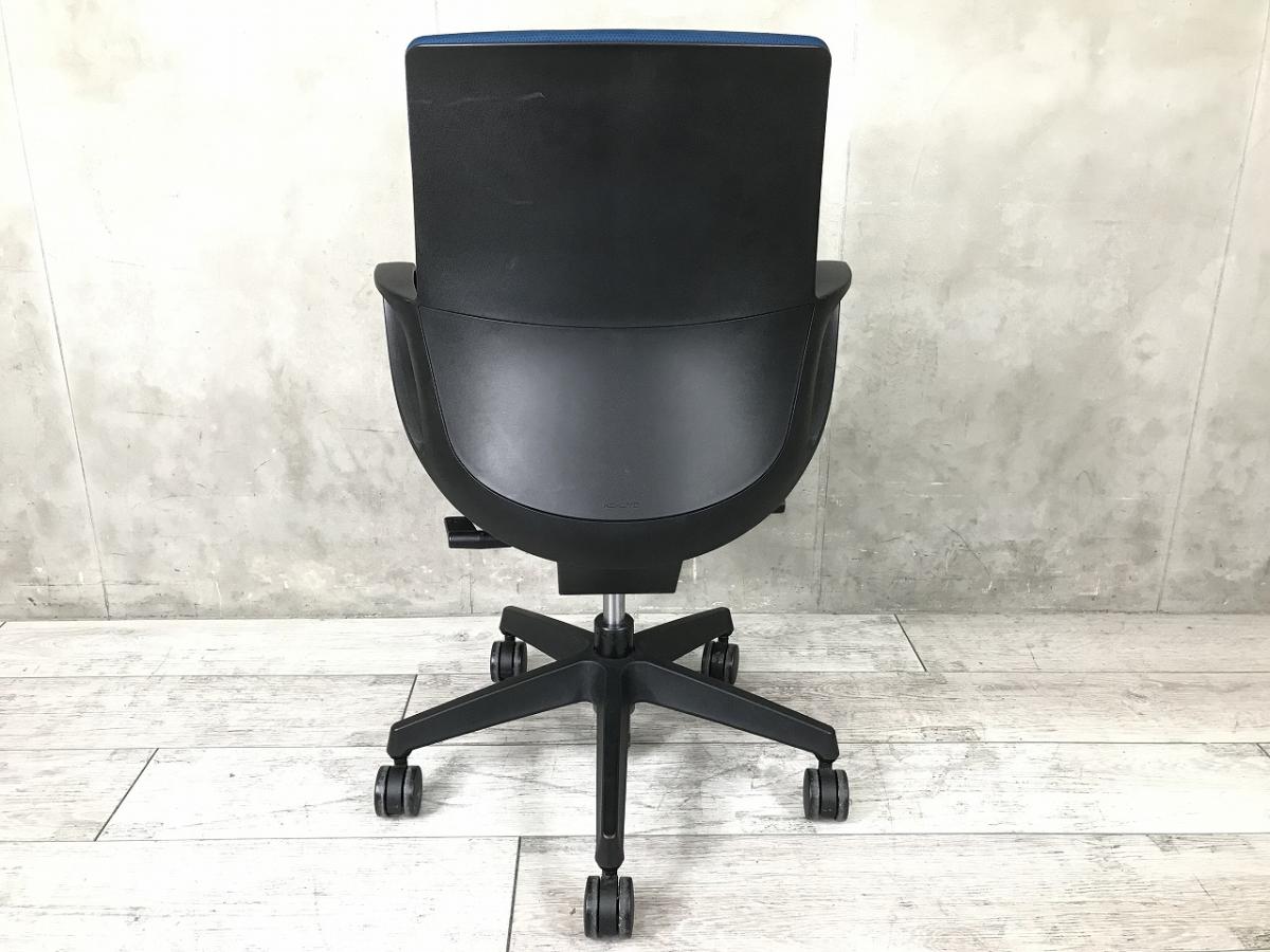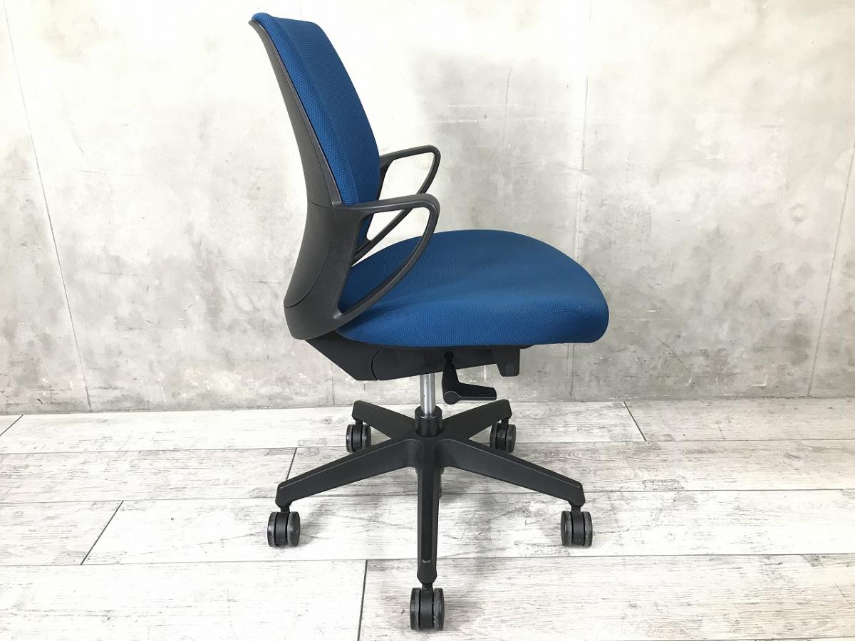 ★コクヨ製 ピコラ プルシアンブルー ブラックフレーム 肘付き ローバック オフセットアーム※固定肘 デスクにスッキリ収納できるコンパクト設計! スマートなデザインで使い勝手が良し! 肘付きローバックチェア!!