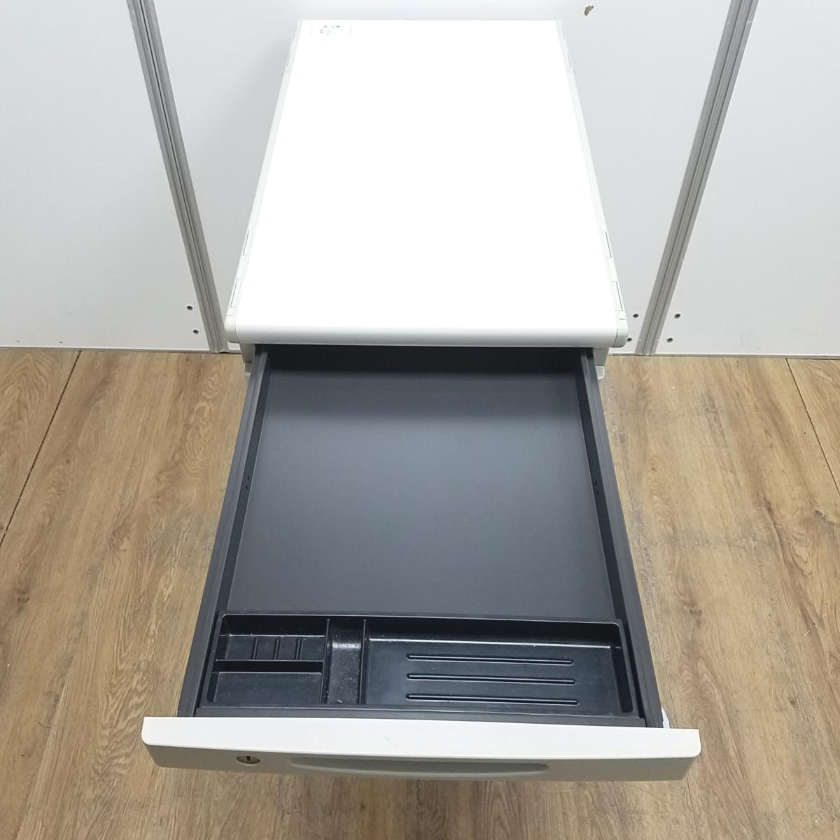 オカムラ製 SD-V ライトグレー W400×D700×H700サイズ シリンダー 収納と作業スペースを同時に確保できる脇机! 3段脇机!!- 京都東寺店