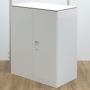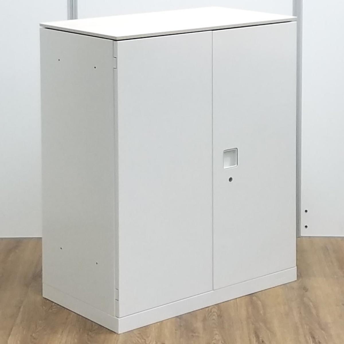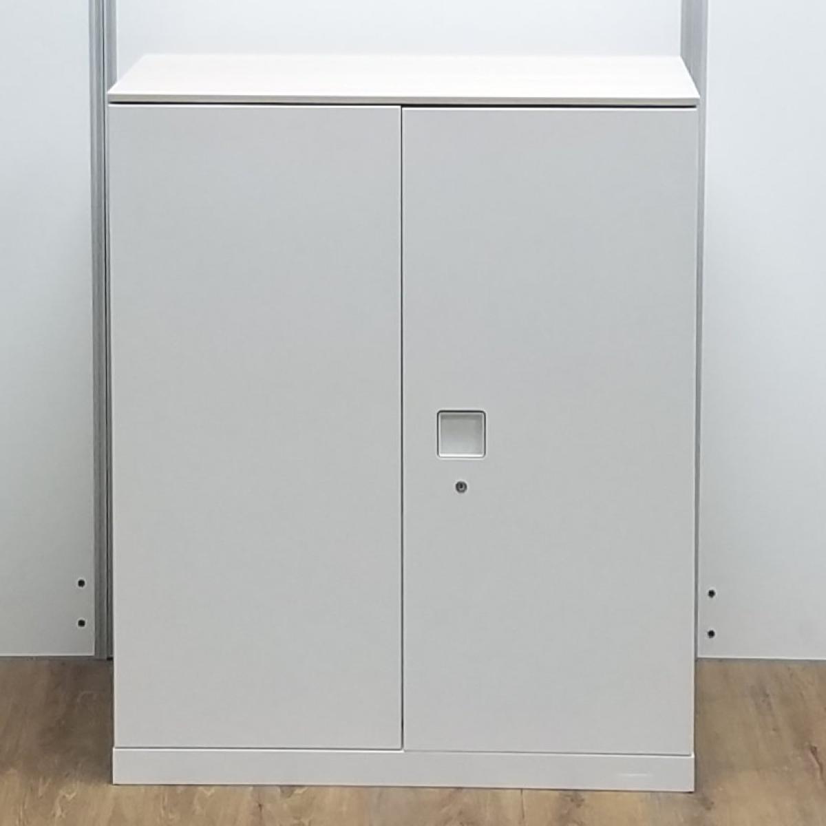 オカムラ製 レクトライン ホワイト シリンダー ナチュラル天板 W800×D450×H970サイズ オフィスの書類をスッキリ整理! W800サイズのコンパクトな観音開き書庫はスペースの有効化におすすめ! 両開き書庫!!- 京都東寺店
