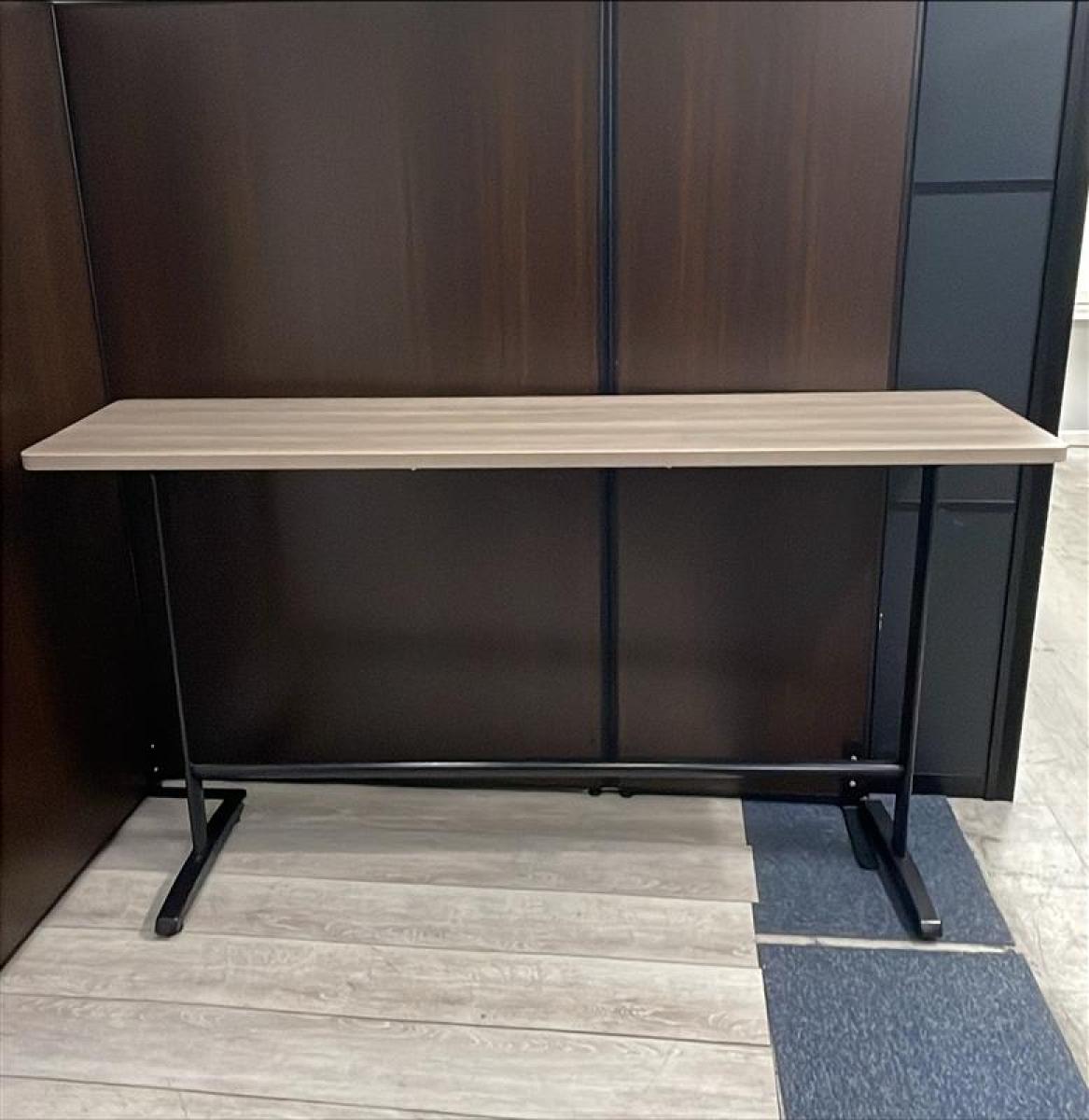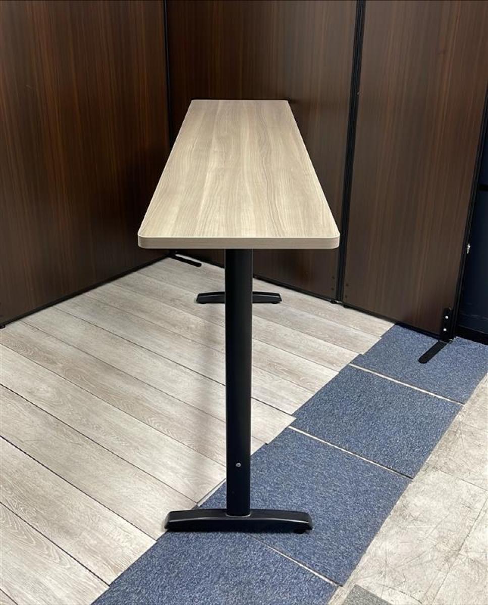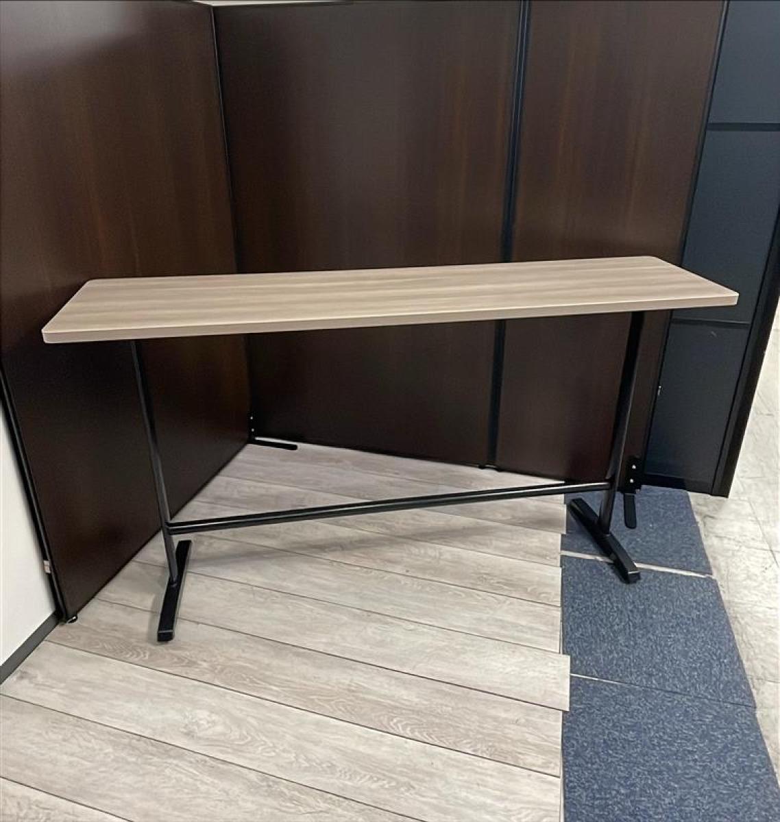 【お洒落なカラーのハイテーブル! 休憩スペースにいかがですか!】■オカムラ 8177シリーズ ハイテーブル W1800mm×H1000mm ■プライズウッドミディアム天板×ブラック脚- 新大阪店