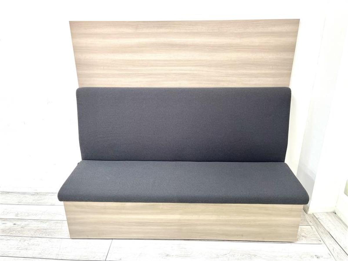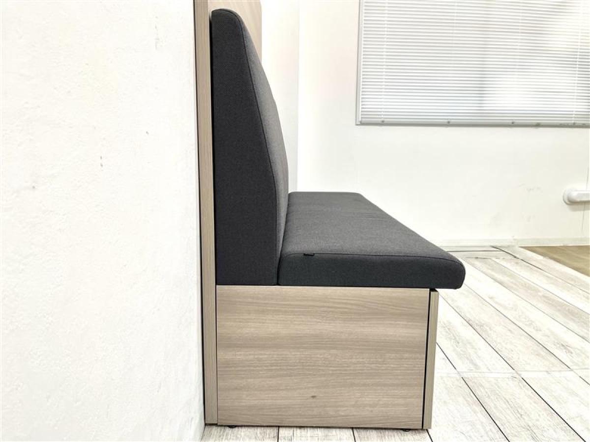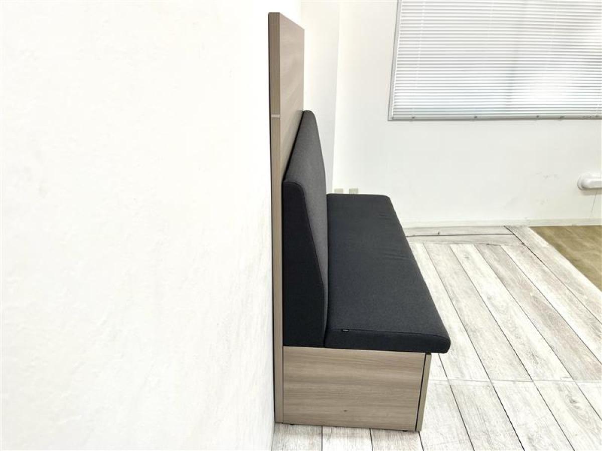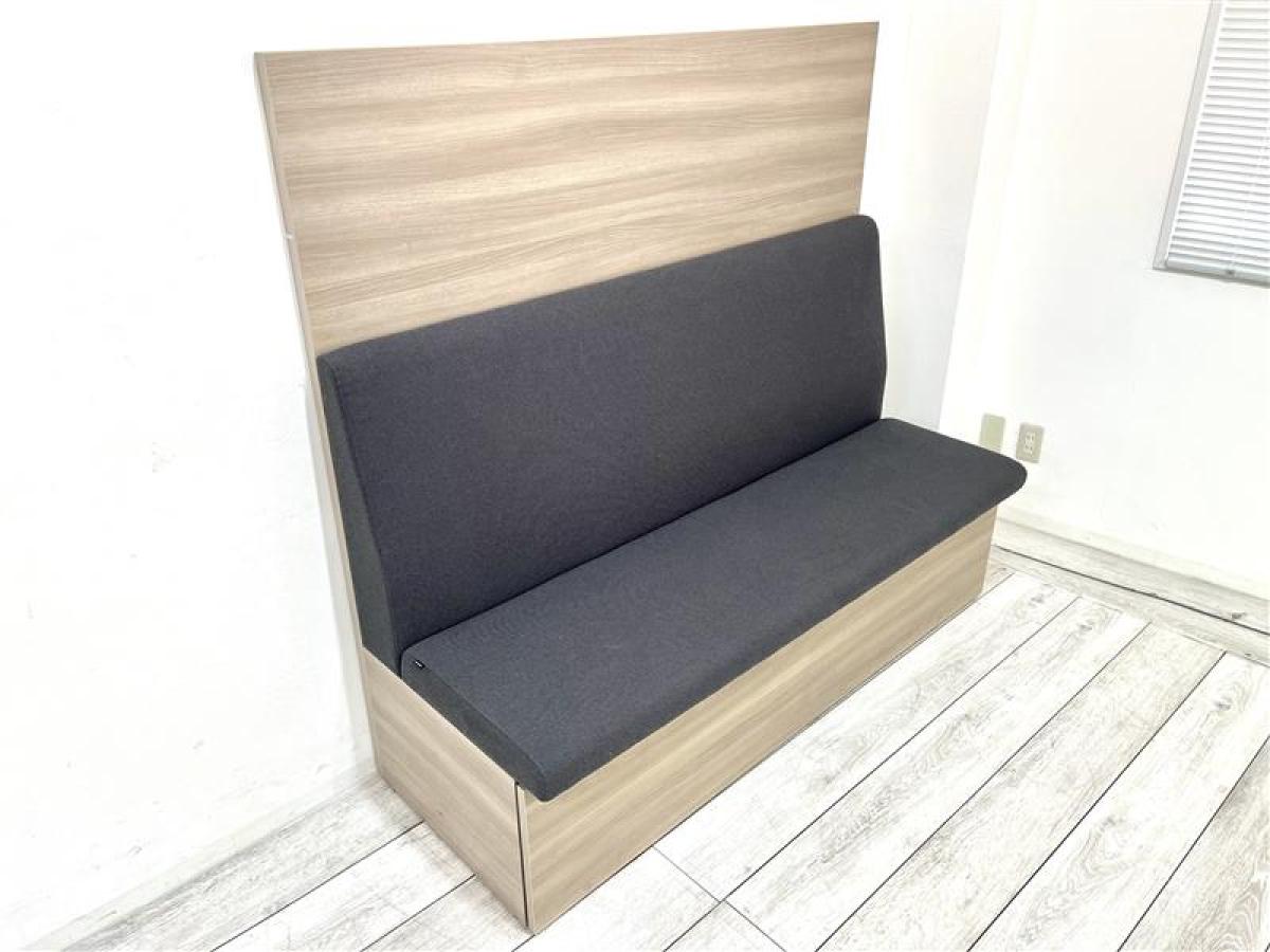 【定価約20万円以上】【リフレッシュルームや接客スペースなどにお勧め!】■オカムラ/ブレスタ(パネル付き) ■3人用ソファ ■ダークグレー/脚ナチュラル- 仙台店