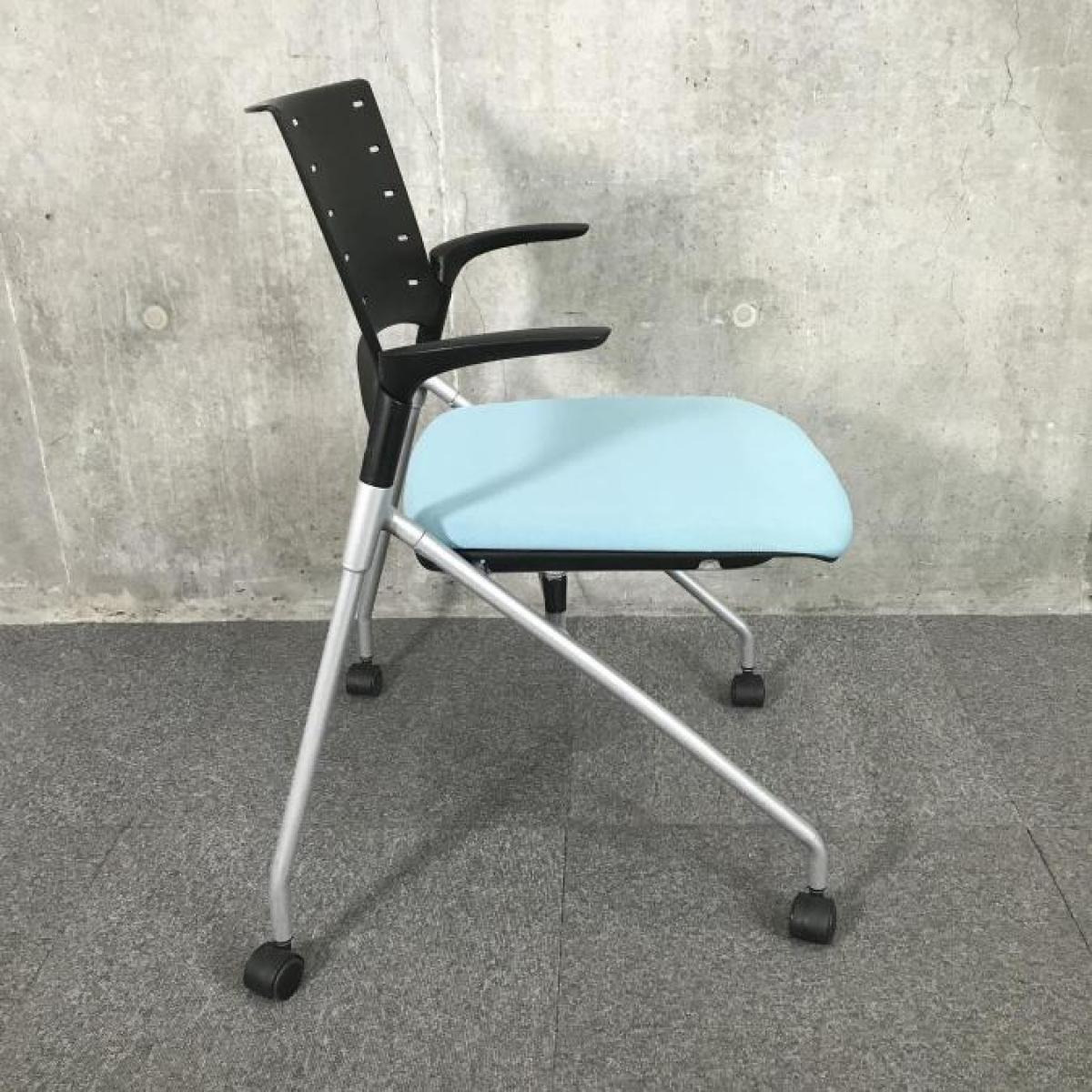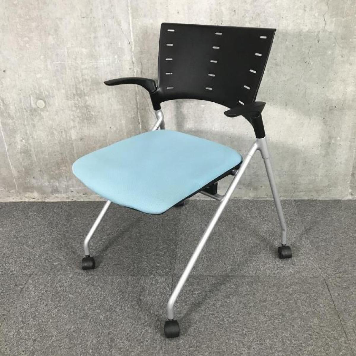 【関東倉庫在庫品】【フレキシブルに使える!平行ネスティングで省スペース化!】■イトーキ(ITOKI)製 マノス(MANOSS) ネスティングチェア ミーティングチェア ■背パッド付 ■キャスター付 ■ブルー【弊社使用欄:A01014525】【ECBMC】
