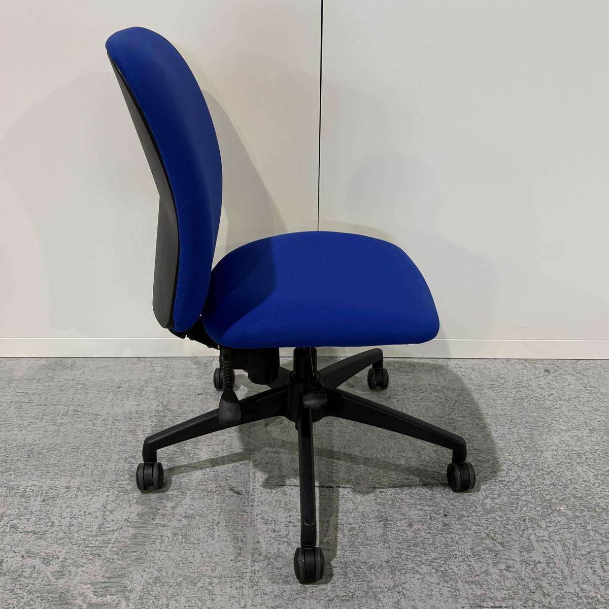 【訳アリ品】スチールケース製 アプトシリーズ ブルー オフィスの執務室や事務所などにおすすめ! 座り心地に配慮した厚めのクッションが好評! 肘無しローバックチェア!!