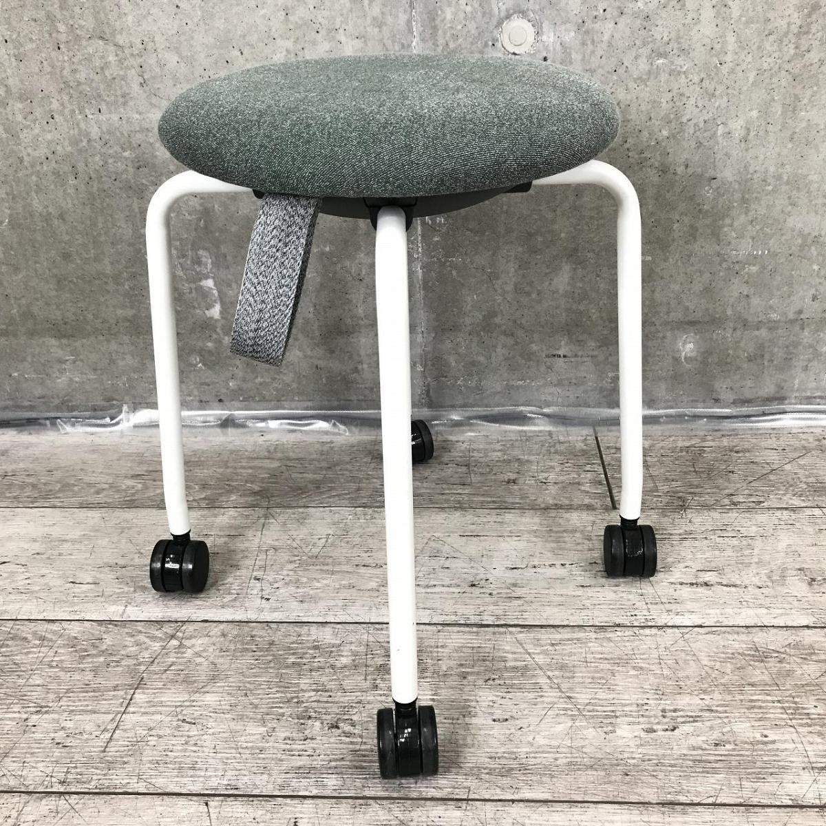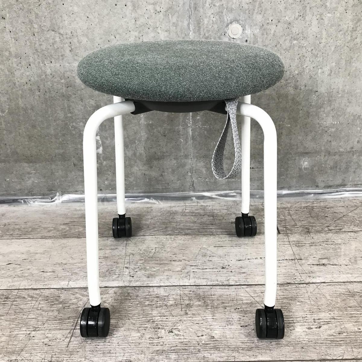 【作業に合わせて柔軟に対応できるキャスター付き!スタッキングも可能!】■オカムラ(okamura)製 スプリント(SPRINT)シリーズ スツール 丸椅子 ■キャスター付き ■座面ダークグリーン 脚ホワイト- 千葉店