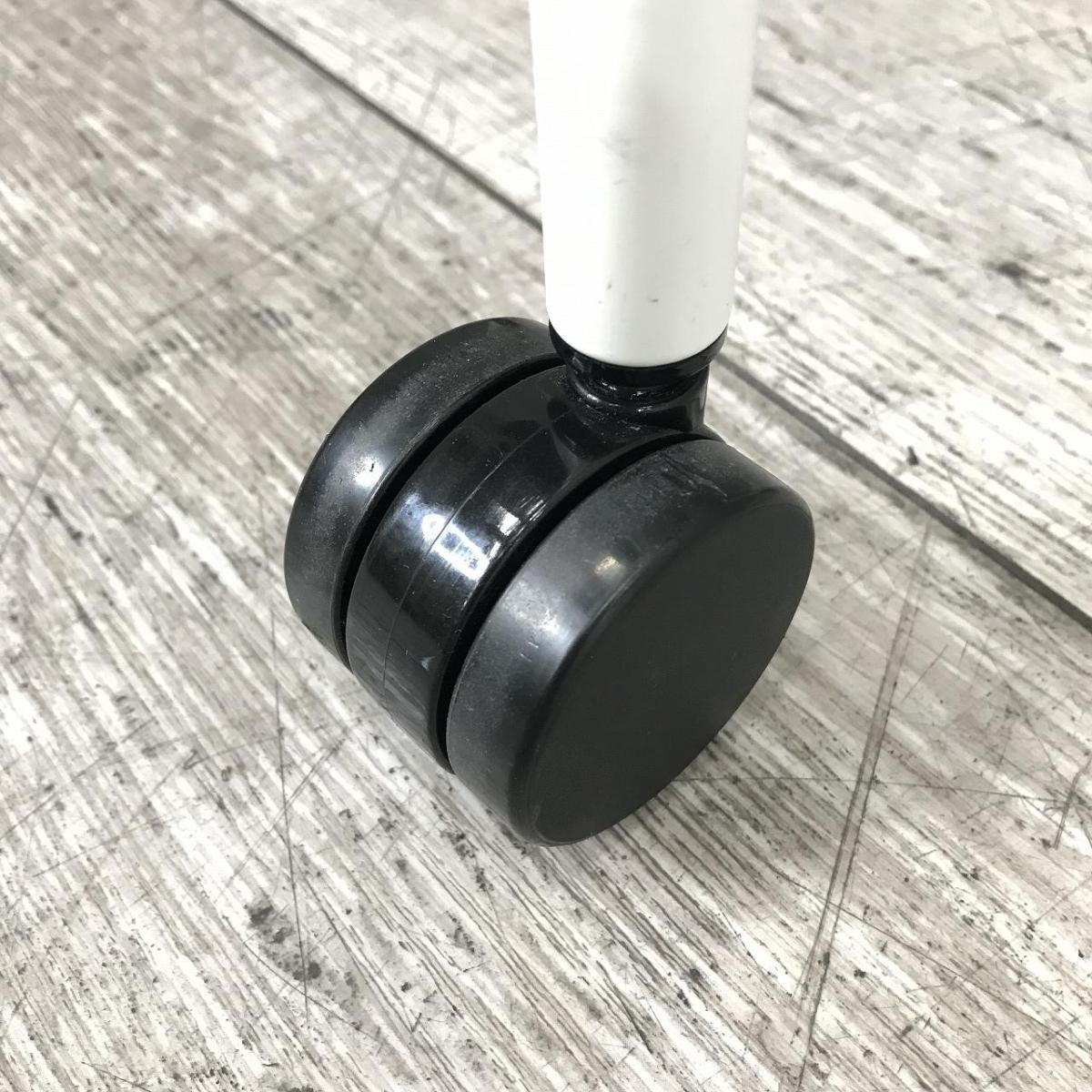 こちらのスツールは厚みのあるクッションと移動自由なキャスター付きで