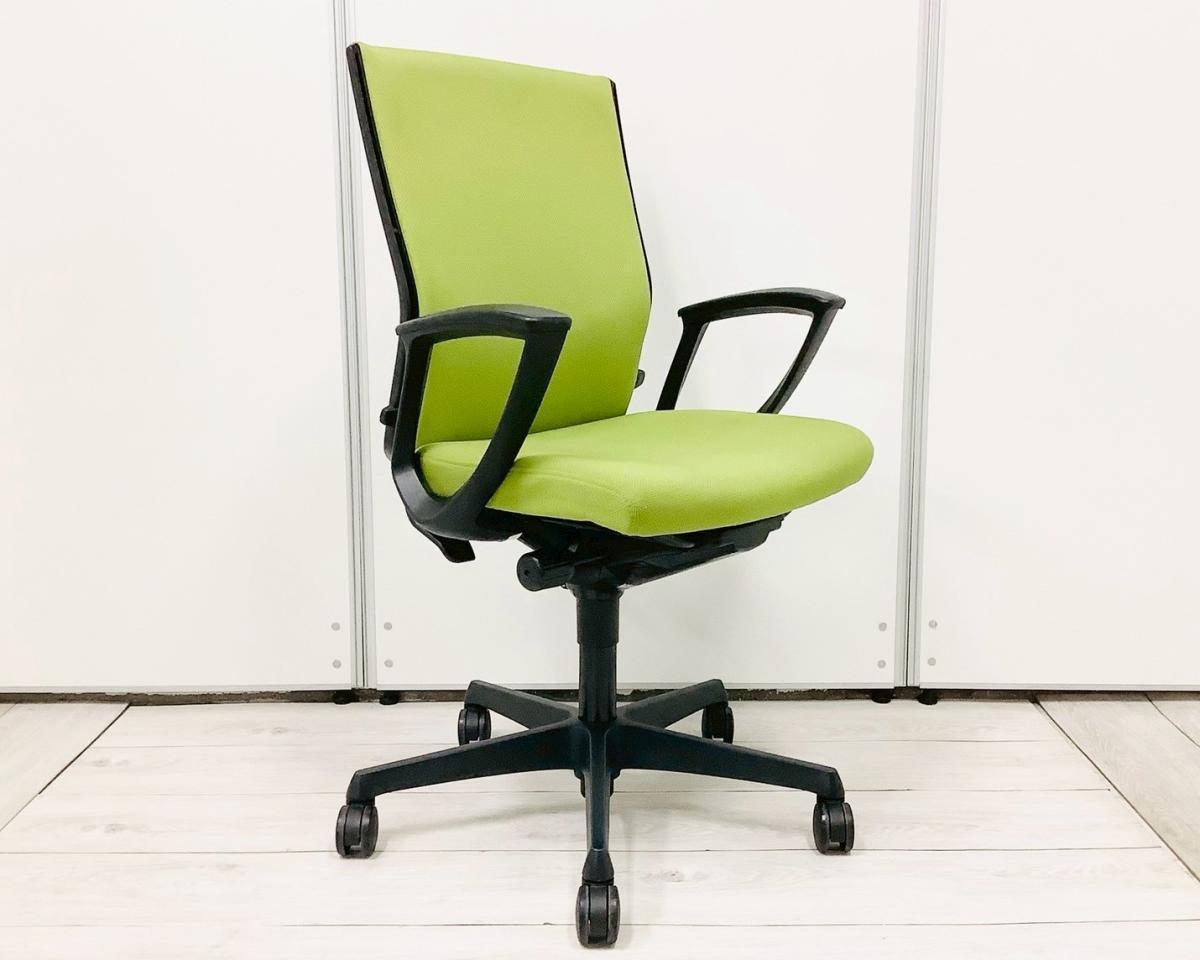 【定番のミドルクラスチェアが入荷!】雰囲気をアゲる今流行りの明るいグリーンカラー! ■オカムラ/エスクード/イエローグリーン 固定肘付き【AD】