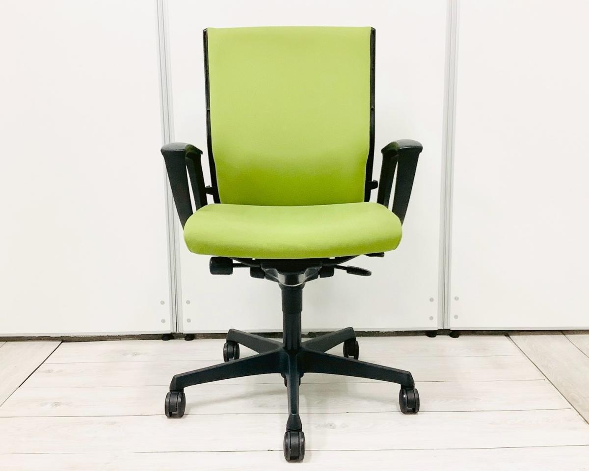 【定番のミドルクラスチェアが入荷!】雰囲気をアゲる今流行りの明るいグリーンカラー! ■オカムラ/エスクード/イエローグリーン 固定肘付き