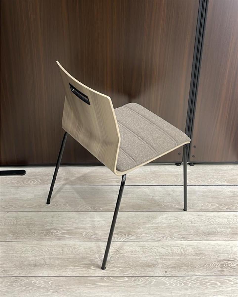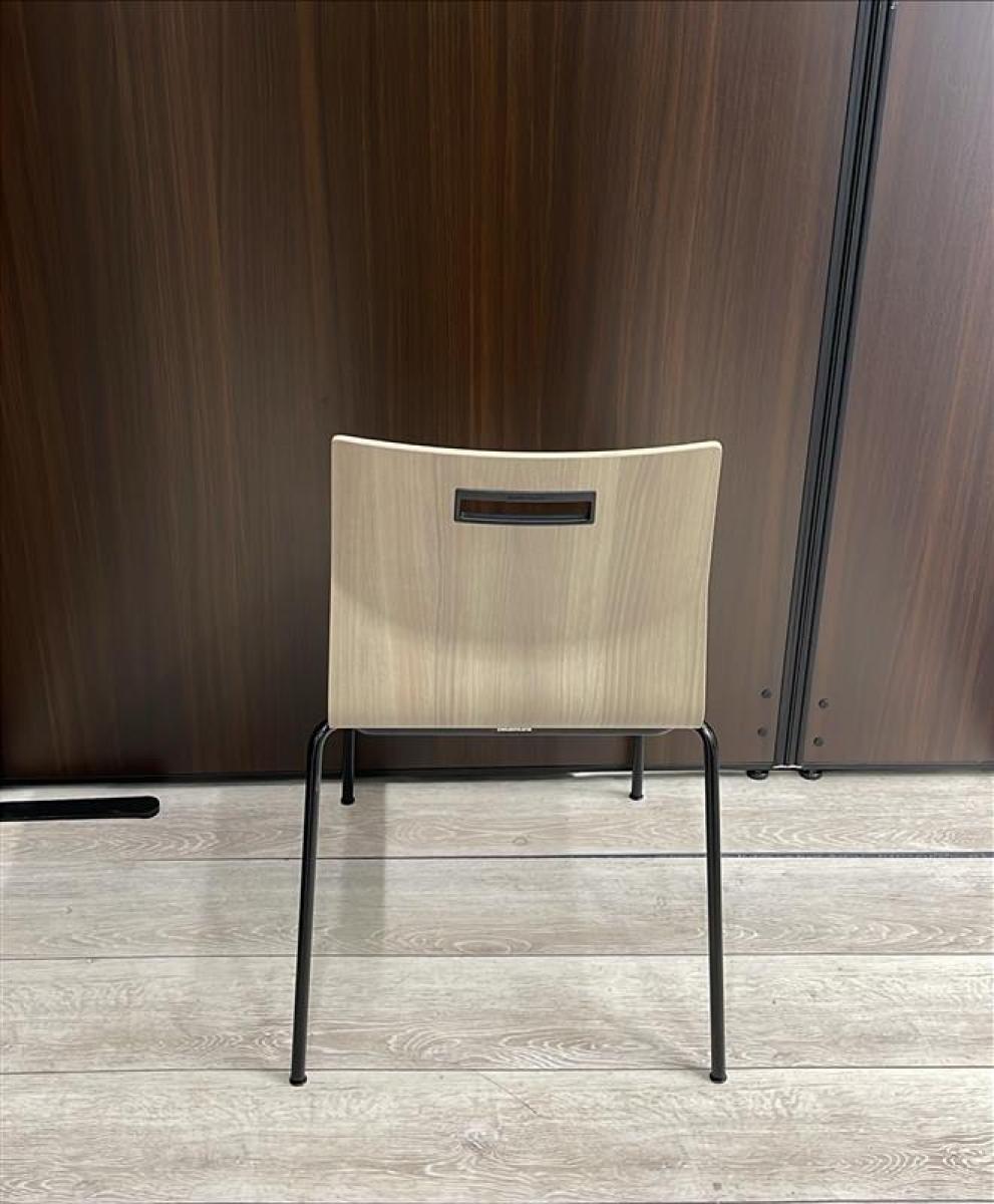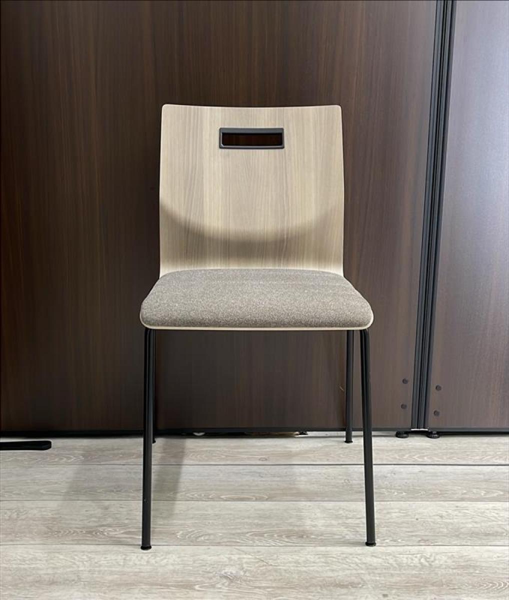 【木製シェルのお洒落なスタッキングチェア!】■オカムラ スイープ(Sweep) スタッキングチェア ■シェル:プライズウッドミディアム 座パッド:ダークブラウン フレーム:ブラック- 新大阪店
