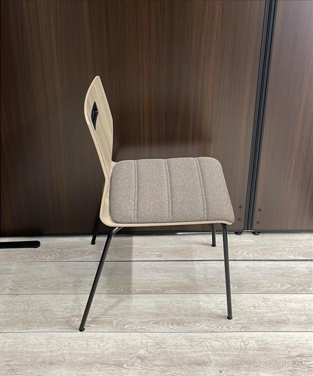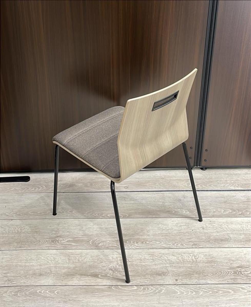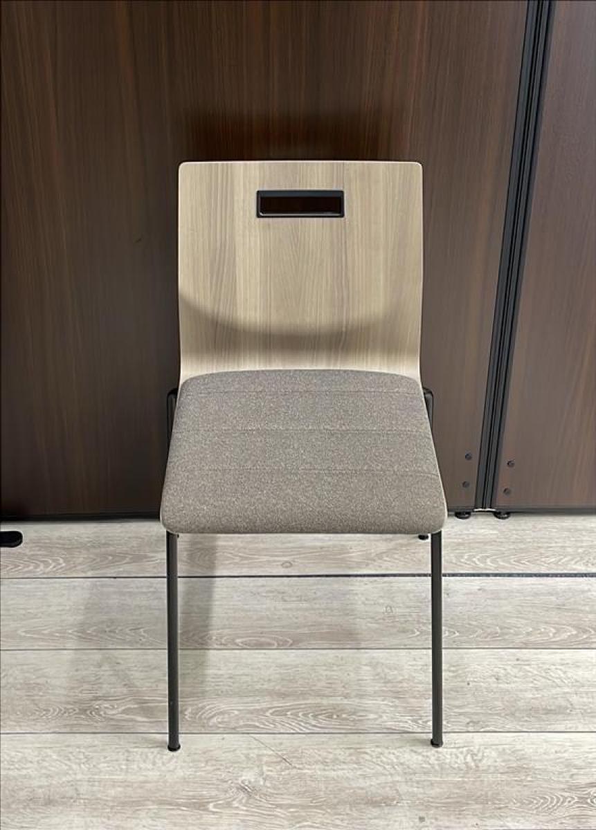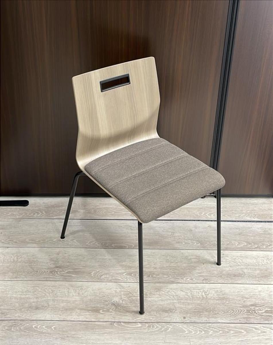 【木製シェルのお洒落なスタッキングチェア!】■オカムラ スイープ(Sweep) スタッキングチェア ■シェル:プライズウッドミディアム 座パッド:ダークブラウン フレーム:ブラック- 新大阪店