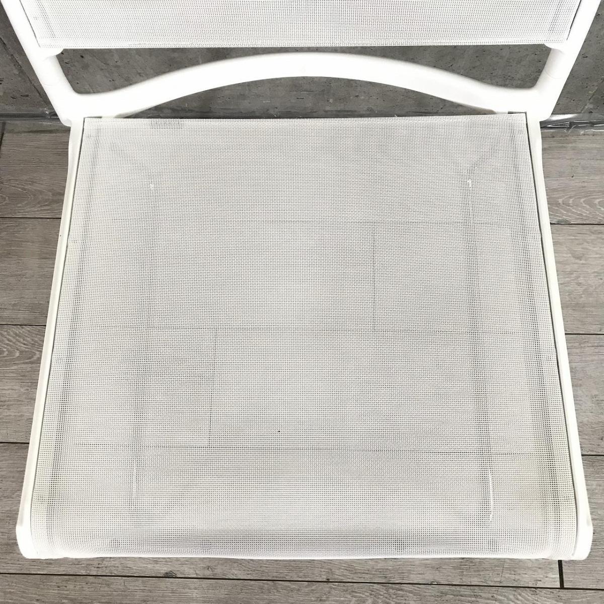 - かなり強い濃い黄ばみ・変色が商品全体にある。(例、座面・背もたれ、脚部等にある。)