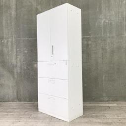 【収納量抜群の書庫セット!観音開き+引き出しタイプの人気の組み合わせ!】■コクヨ(KOKUYO)製 エディアシリーズ(EDIA) 両開き+3段ラテラル 書庫セット ハイキャビネット ■シリンダー錠 ■ホワイト