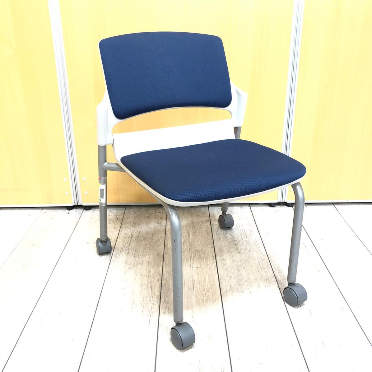 【残り2脚の為、お安く!】【キャスター付きで使いやすい!ミーティングに最適!】■ウチダ(UCHIDA)製 MF-180シリーズ スタッキングチェア ミーティングチェア ■キャスター付き ■レイズンブルー×ホワイトシェル