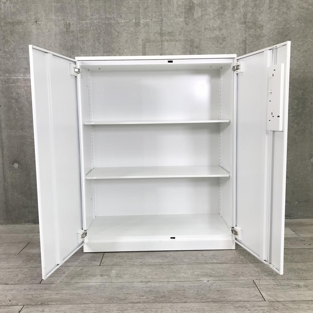 【収納物がひとめで分かる両開き戸タイプ!】■コクヨ(KOKUYO)製 エディア(EDIA)シリーズ 両開き書庫 ローキャビネット H1130㎜ ■天板・ベース付 ■ホワイト ■シリンダー錠
