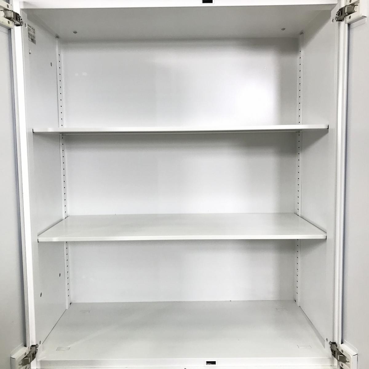 【収納物がひとめで分かる両開き戸タイプのホワイト書庫!】■コクヨ(KOKUYO)製 エディア(EDIA)シリーズ 両開き書庫 ローキャビネット ■ホワイト ■シリンダー錠 ■ベース/天板付き- 仙台店