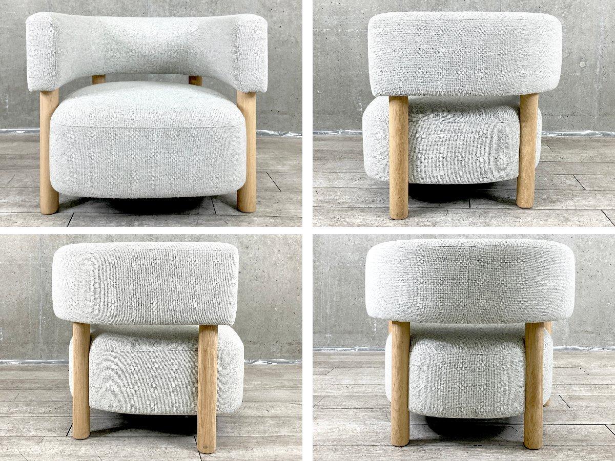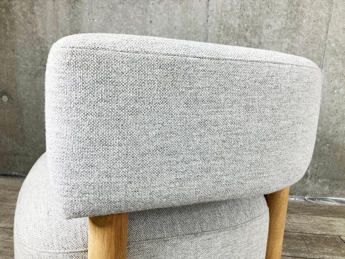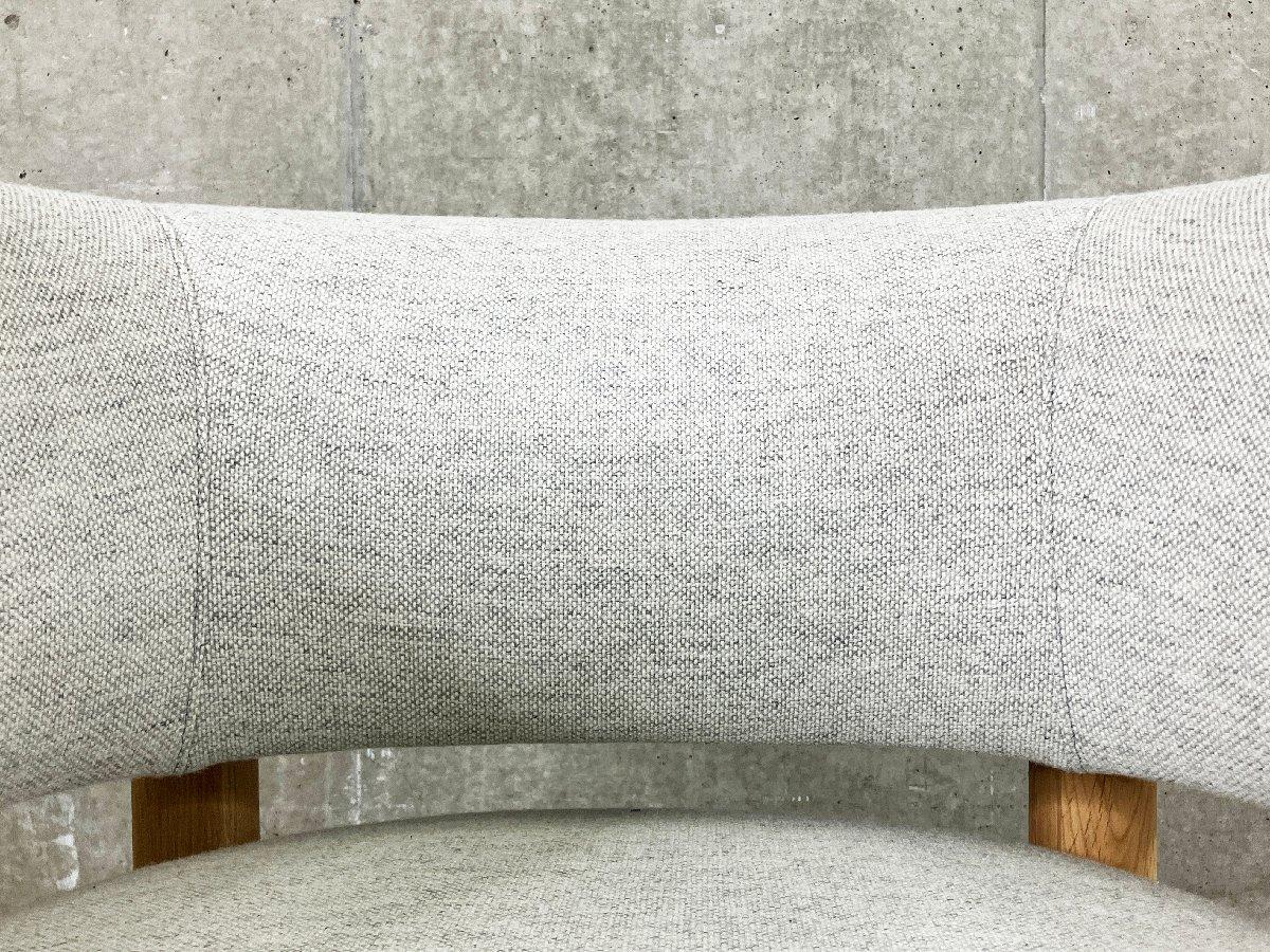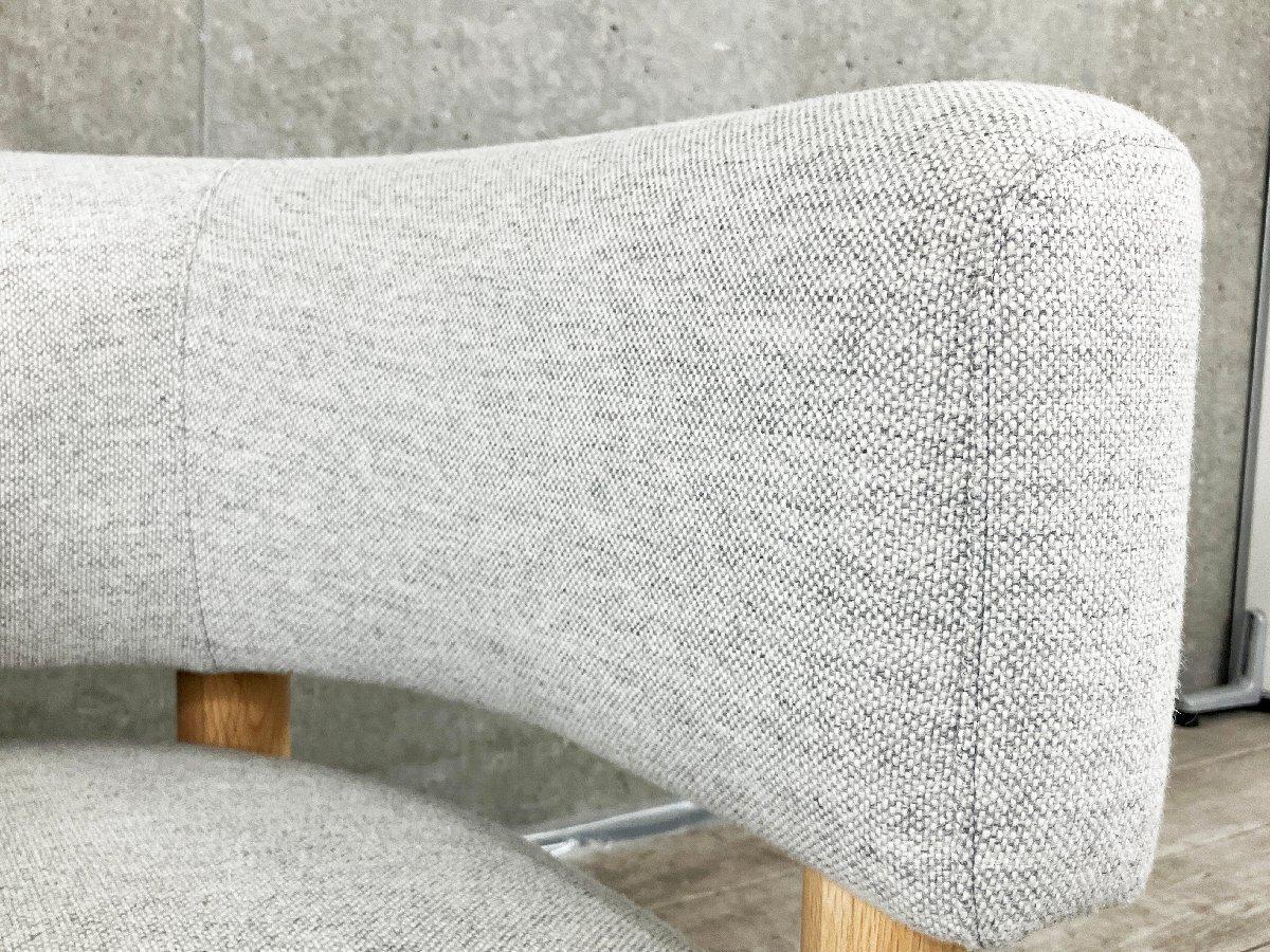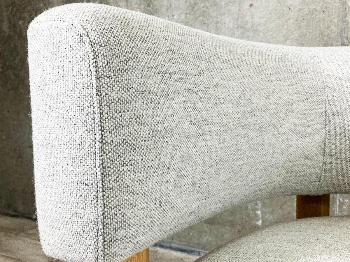低めで柔らかな有機的フォルムが、人の集まる空間にも静謐で安心感のある雰囲気をもたらします。ロータイプのバックレストと穏やかなシェイプが生み出すエレガントな快適さは、空間の大小や用途を問わず幅広く調和。柔らかな張地のシートと無垢材の円筒脚に支えられた構成が、方向を限定せず、温もりのある居心地を演出します。