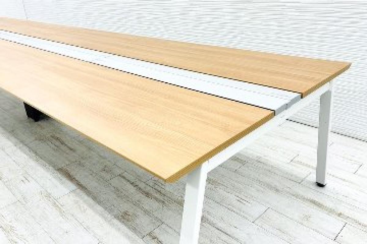 【外部倉庫在庫品】コクヨ SAIBI(サイビ) W4800(W2400+W2400) お洒落な木目調のフリーアドレスデスク・テーブル 天板:ナチュラル 脚:ホワイト 8名様推奨サイズ【OI】- 日本橋店