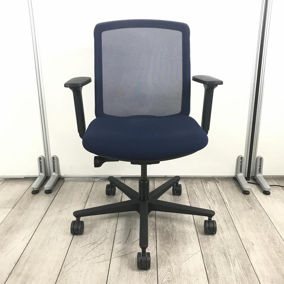 【背面メッシュのローコストチェア!】■ウチダ(UCHIDA)製 カリッサ2(Carissa2) 肘付き ローバック 背面メッシュ ■可動肘 ■ブルー × ブラックシェル