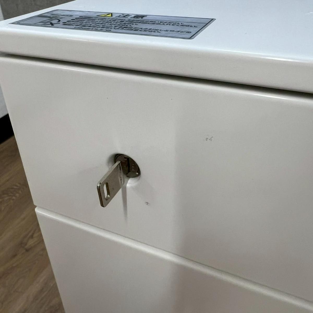 ☆H650mm!【スタイリッシュなデザインで使いやすい!】■オカムラ製 3段ワゴン ネオホワイト フロント把手 シリンダー錠 ■A4サイズのファイルもたっぷり収納できる!【ハイワゴン】