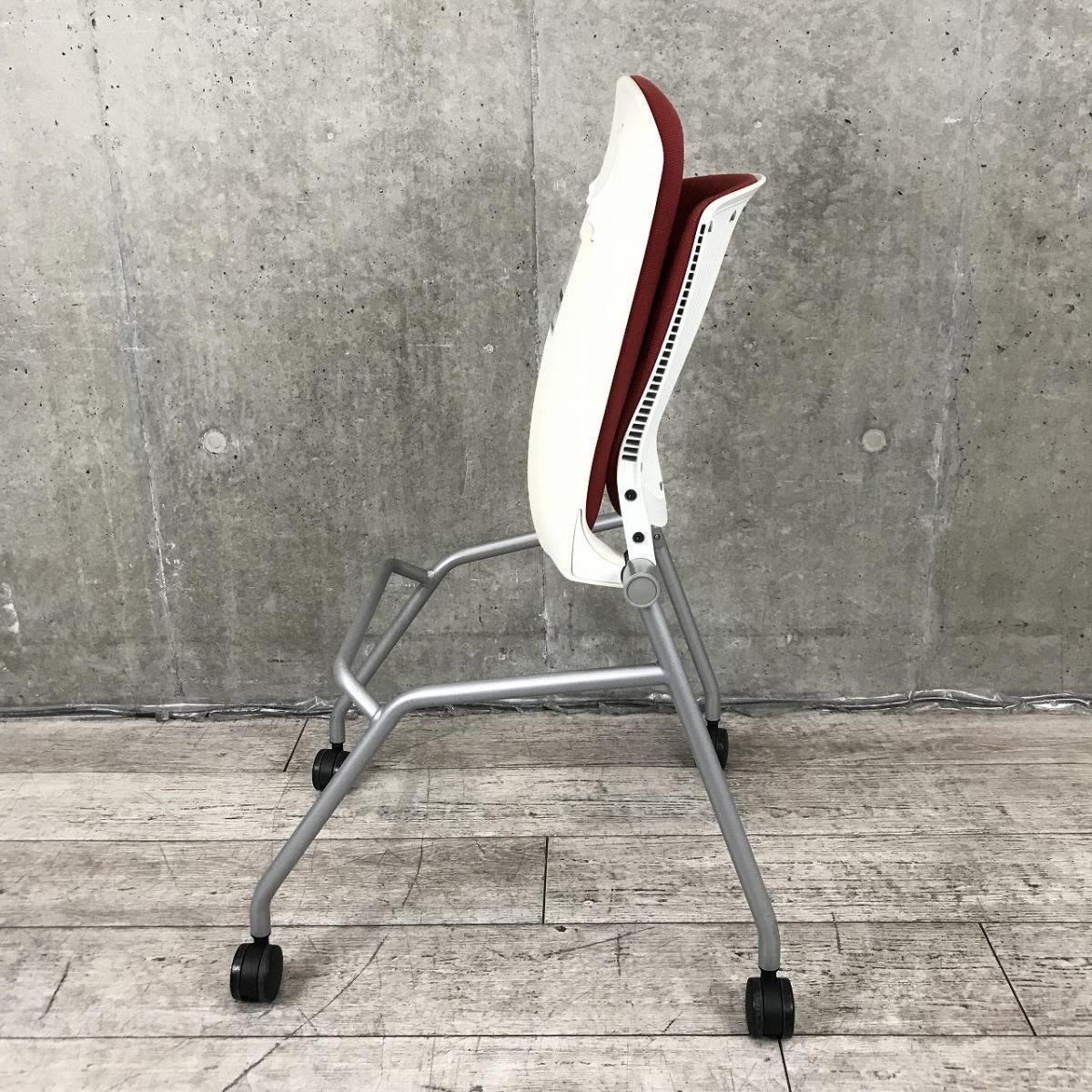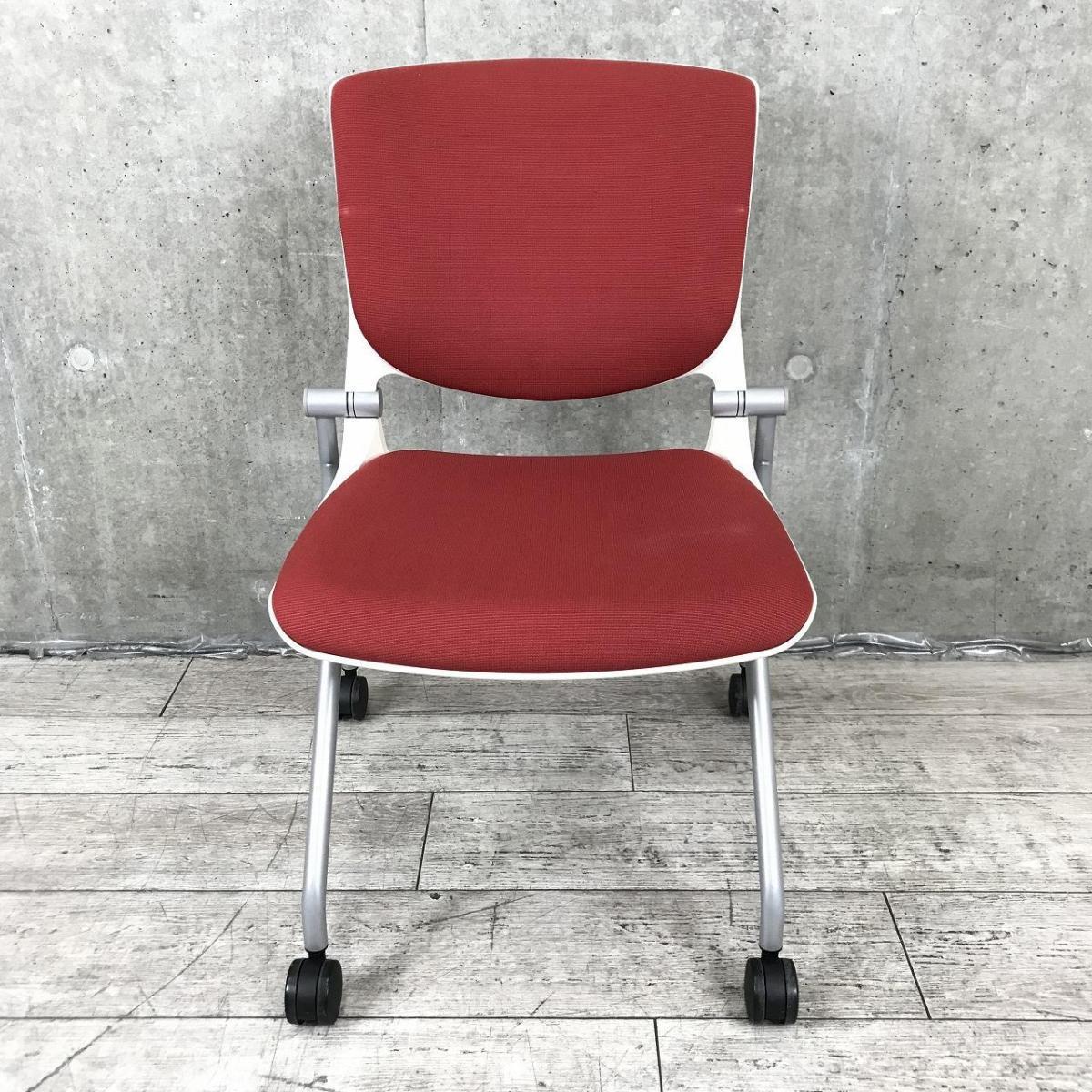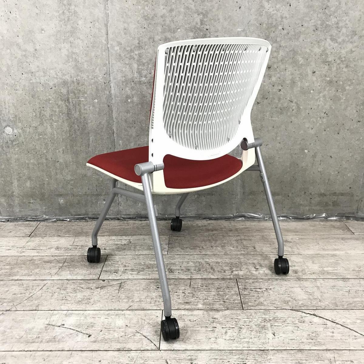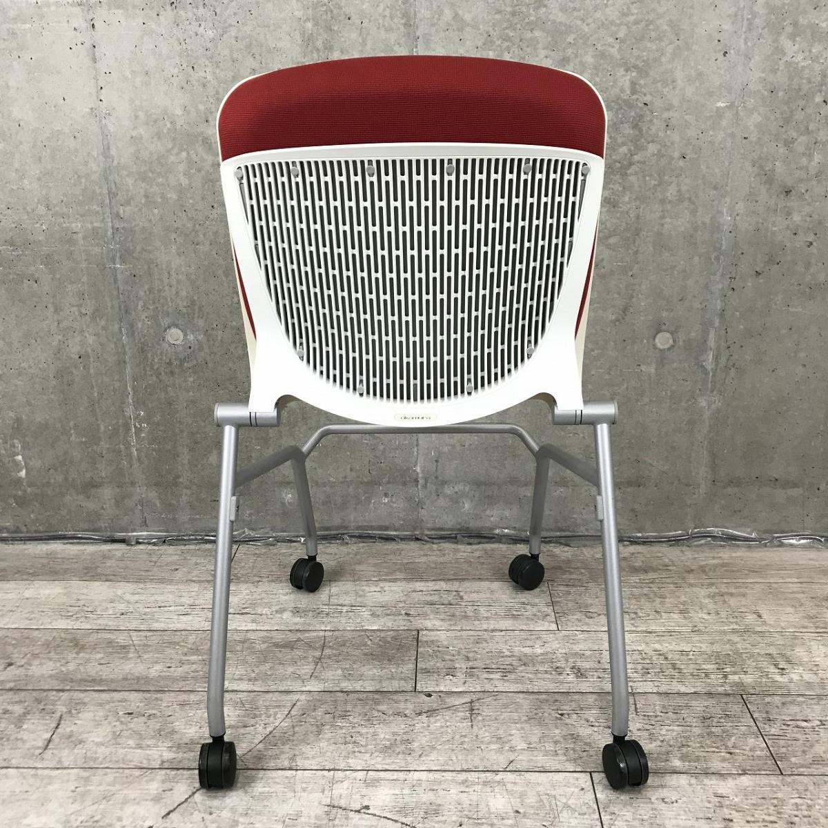 【在庫入替セール】【8脚限定】【しなやかにワーカーを受け止める洗練されたデザイン!使わない時は平行に重ねて収納可能!】■オカムラ(okamura)製 グラータ (Grata) 肘無し ミーティングチェア ネスティングチェア ■背パッド付き ■キャスター付 ■レッド【K10】- 岡山サテライト