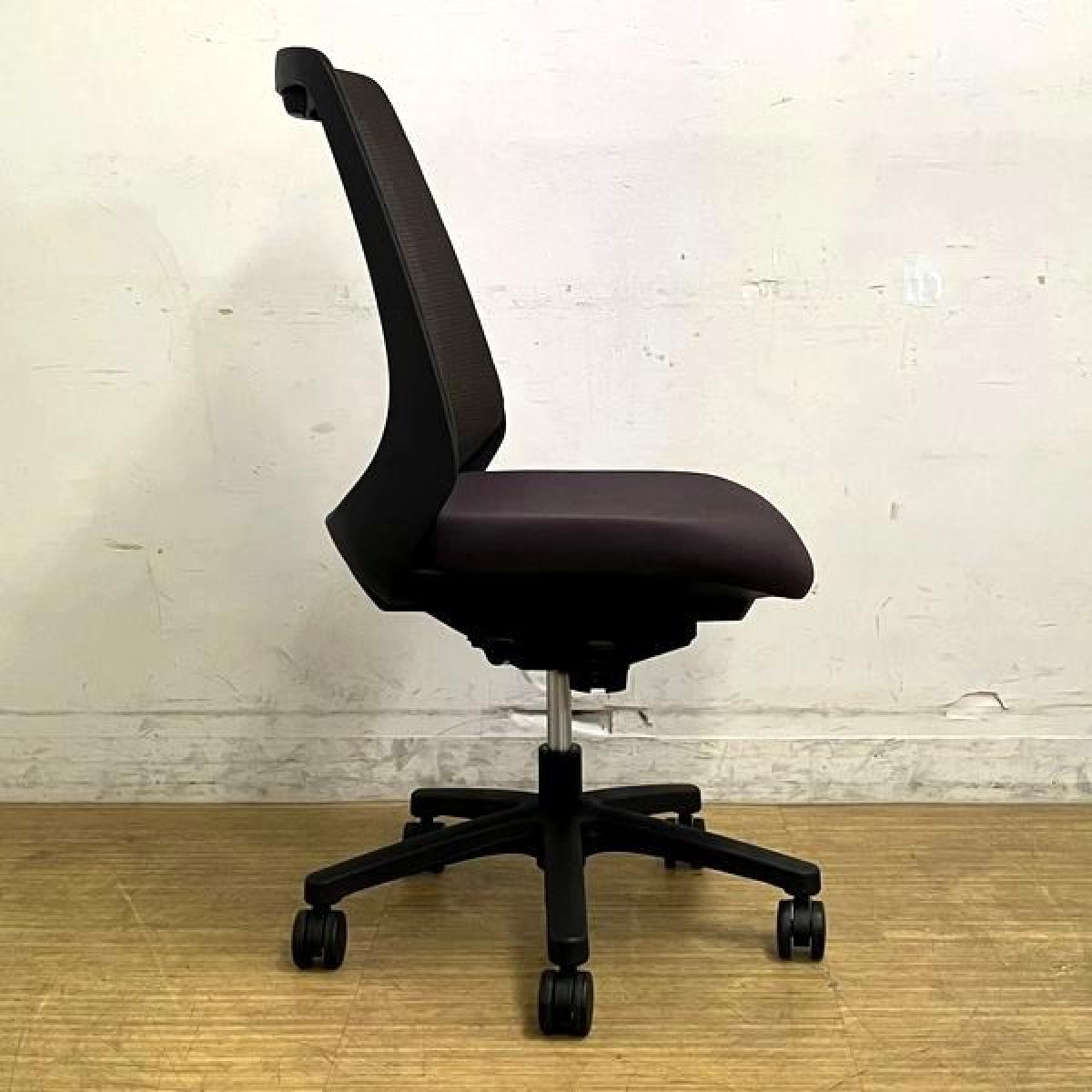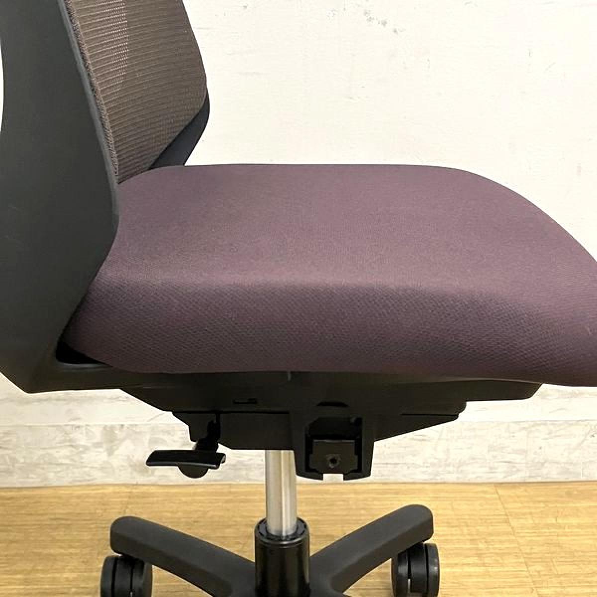 【在庫入替セール】【2023年製】イトーキ ノナ プレーンメッシュ 肘無しチェア 背:チョコレートブラウン 座:パープル ブラックフレーム コンパクトなサイズ感で女性におすすめ- 名古屋千種店