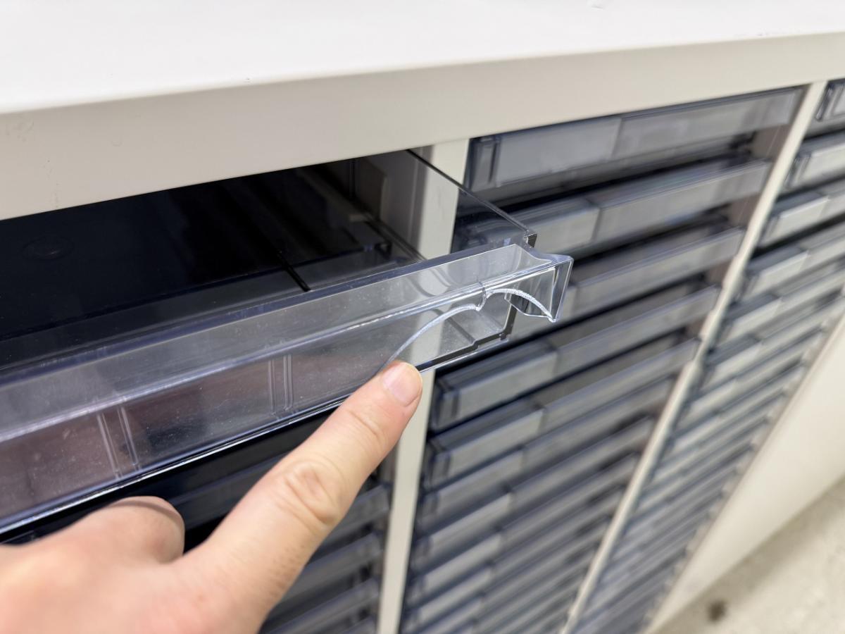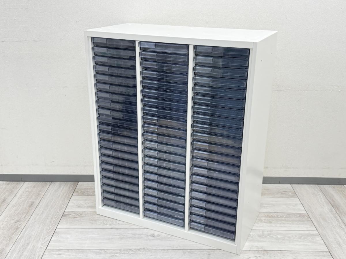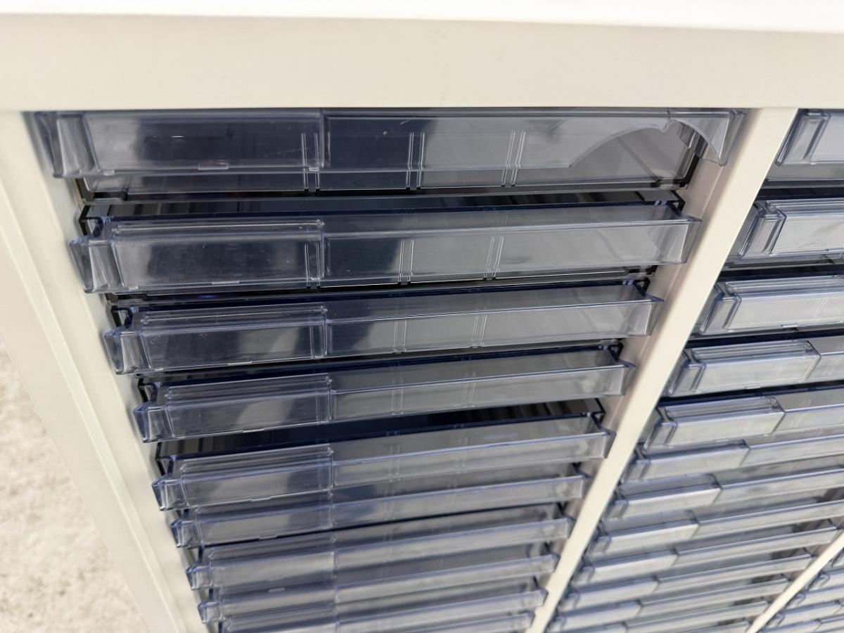 【※一か所引出し割れ有り】【希少なクリスタルキャビネット!細かい書類整理の仕分けに!】■okamura オカムラ クリスタルトレー 浅型24×3列 ■本体ホワイト×ナチュラル天板 〈岐阜・愛知・三重・静岡・福井〉- 浜松サテライト