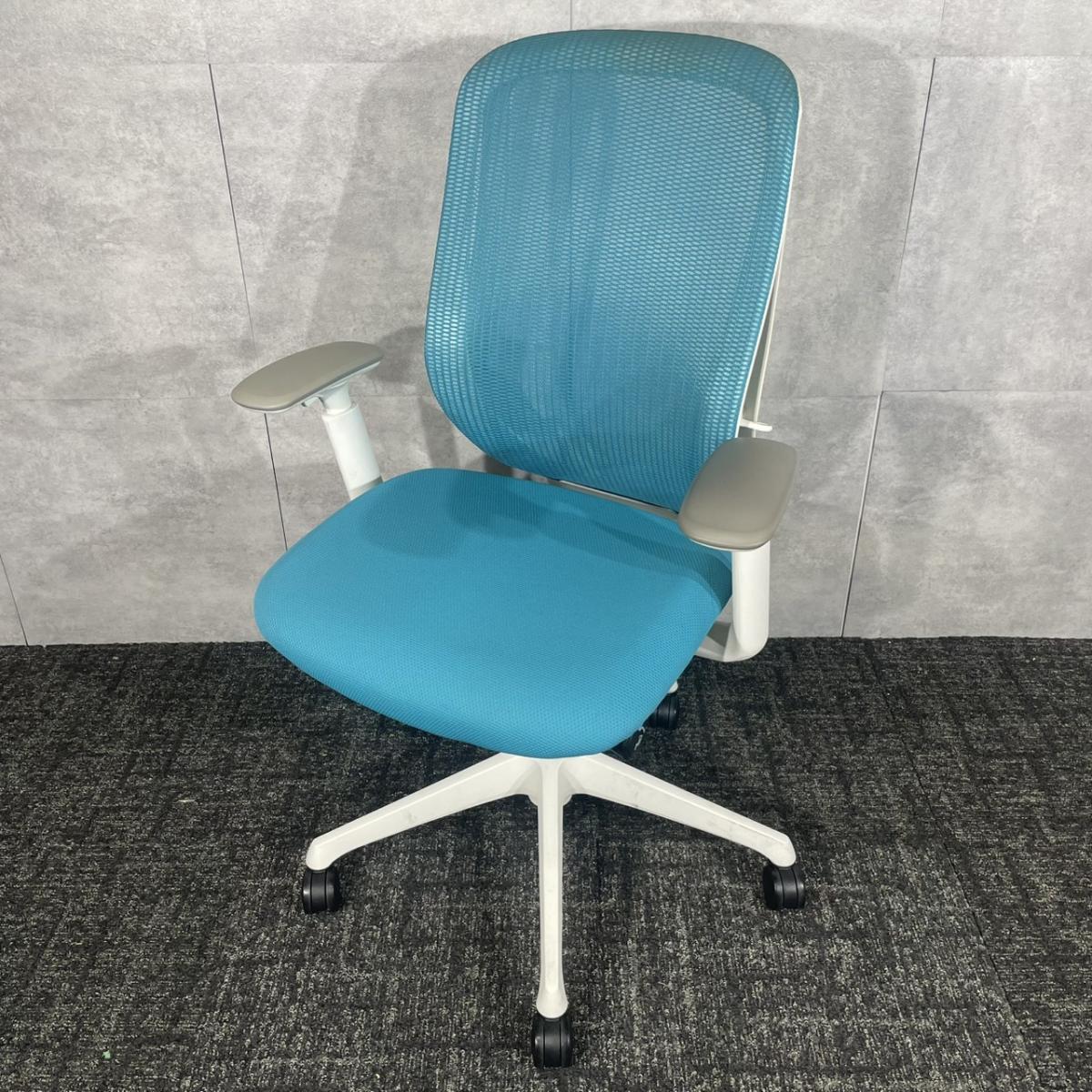 《現物写真だから安心!》オカムラ製の人気オフィスチェア【シルフィーメッシュ/可動肘/ヘッドレスト付き/ブルーグリーン】が先着1名様ご案内可能です!