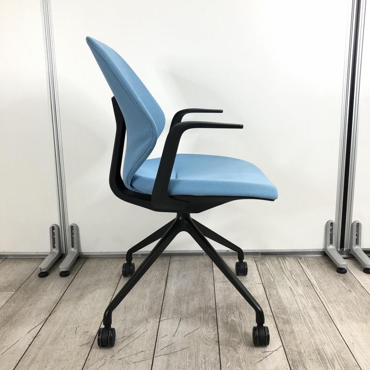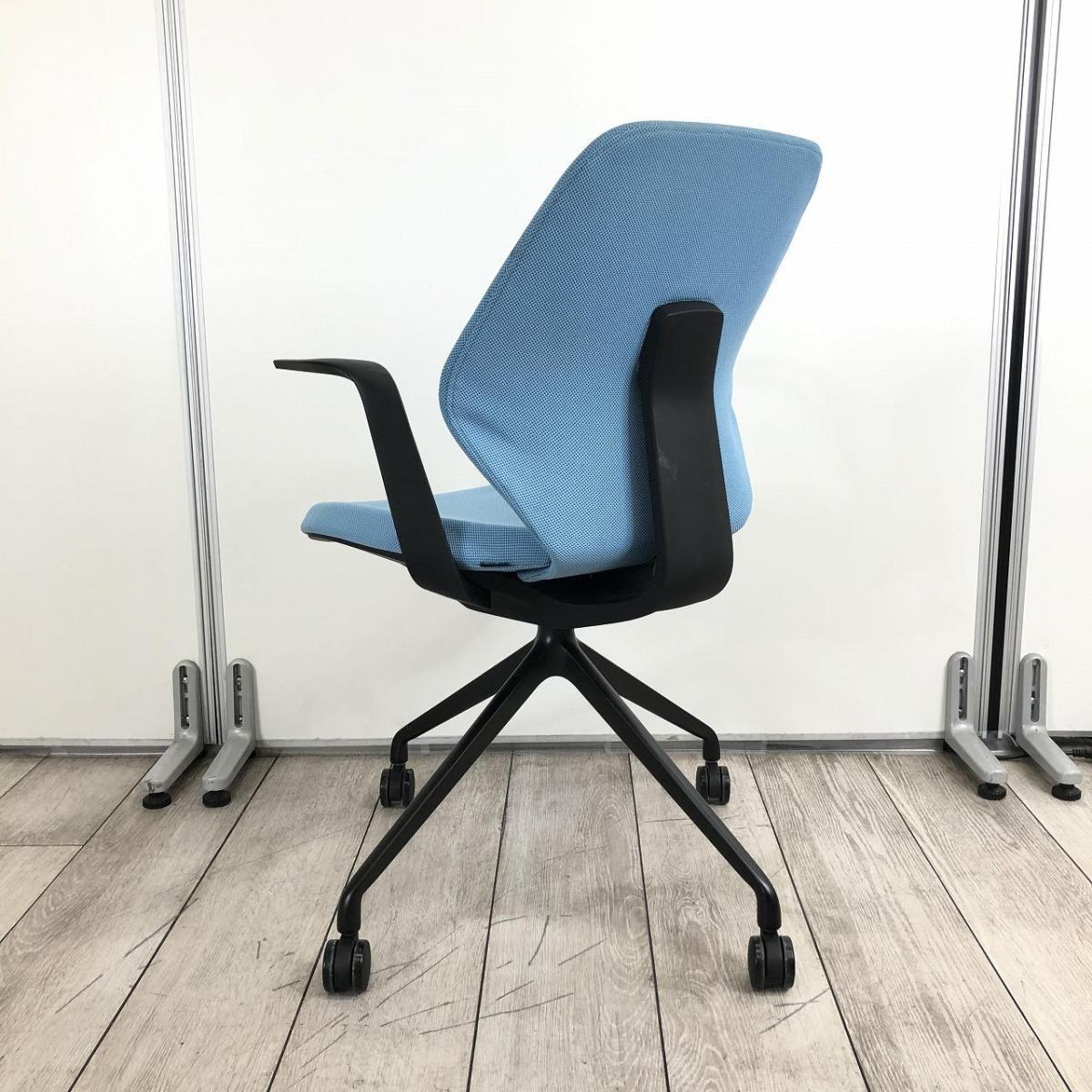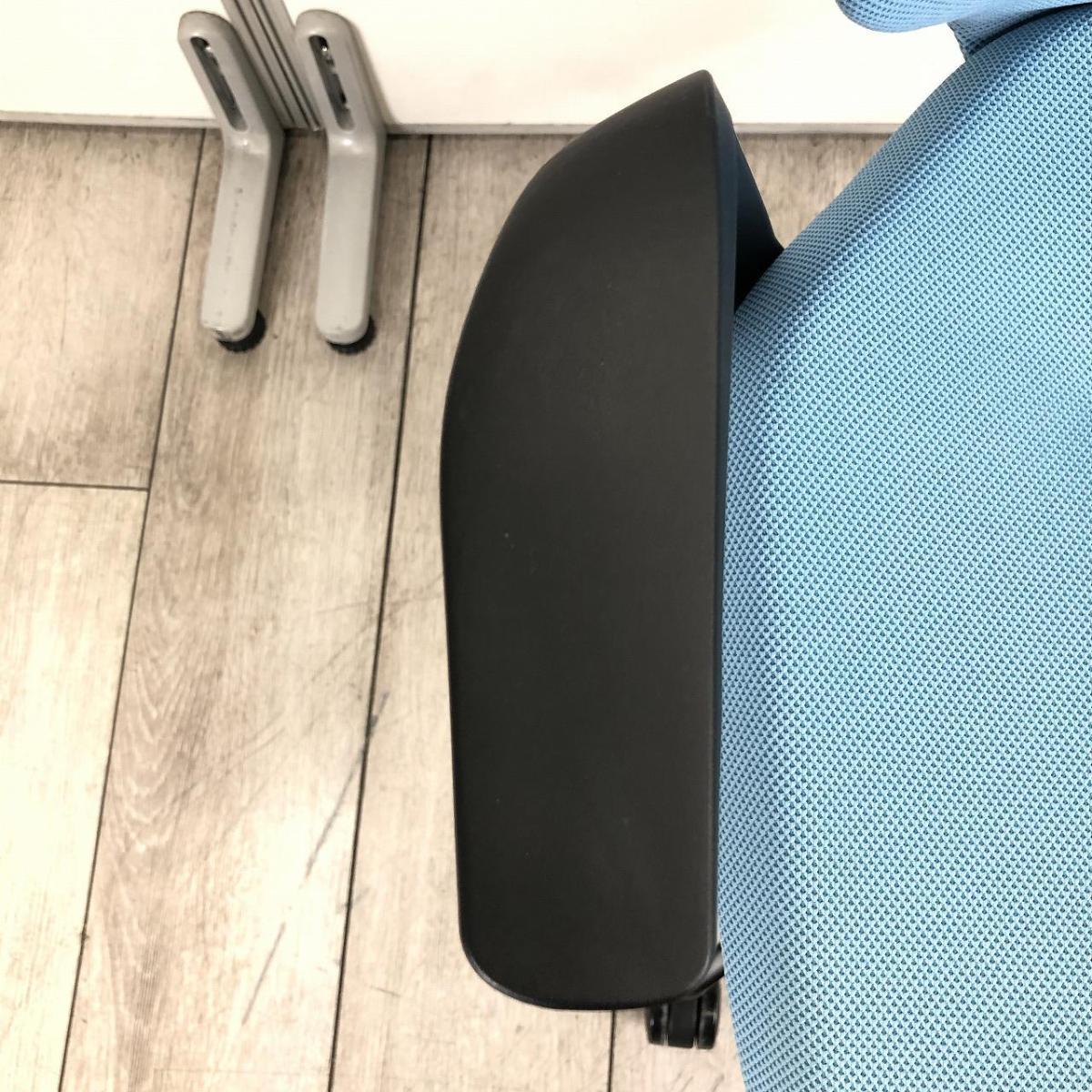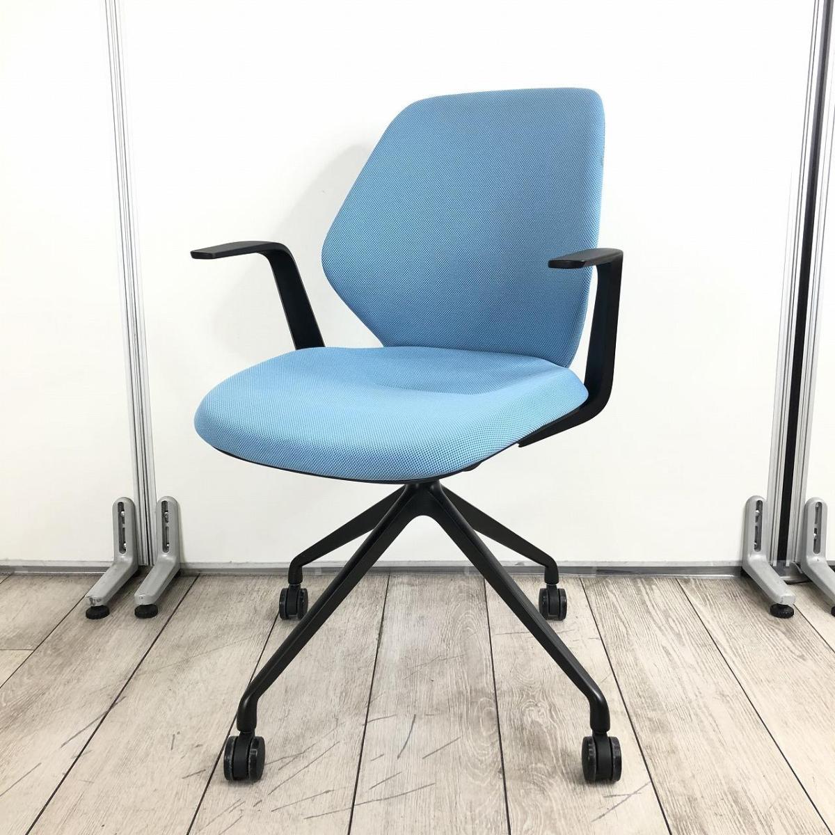 【4脚のセット販売限定※1脚での販売はしておりません】セット価格¥22,000-(税抜)【オフィスに新しい風を吹き込むライトタスクチェア!】【腰回りをしっかりサポート!】■イトーキ製(ITOKI)製 キュアチェア(QuA) 肘付き ミーティングチェア ■背面クロスバックタイプ 4本脚 キャスター付き ■固定肘 ■スカイブルー×ブラックシェル〈岐阜・愛知・三重・静岡・福井〉- 岐阜店