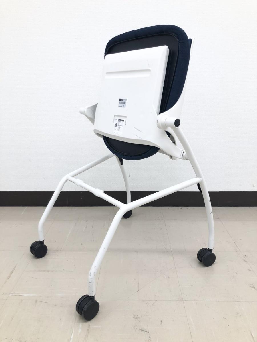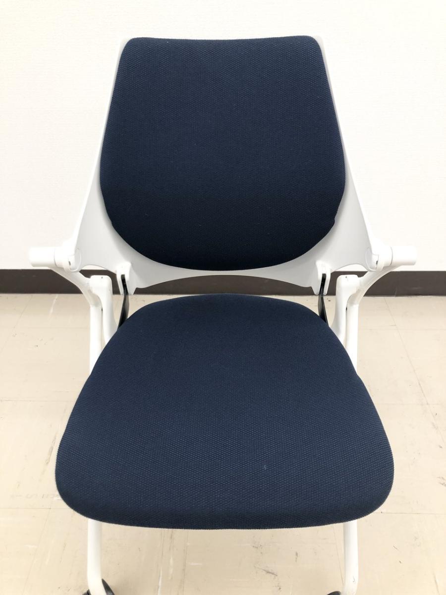 【疲れにくく快適な座り心地を追求!】■イトーキ(ITOKI)製 イプサシリーズ ネスティングチェア ミーティングチェア キャスター付 ■ネイビーブルー×ホワイトシェル 【平行スタックで省スペース!】