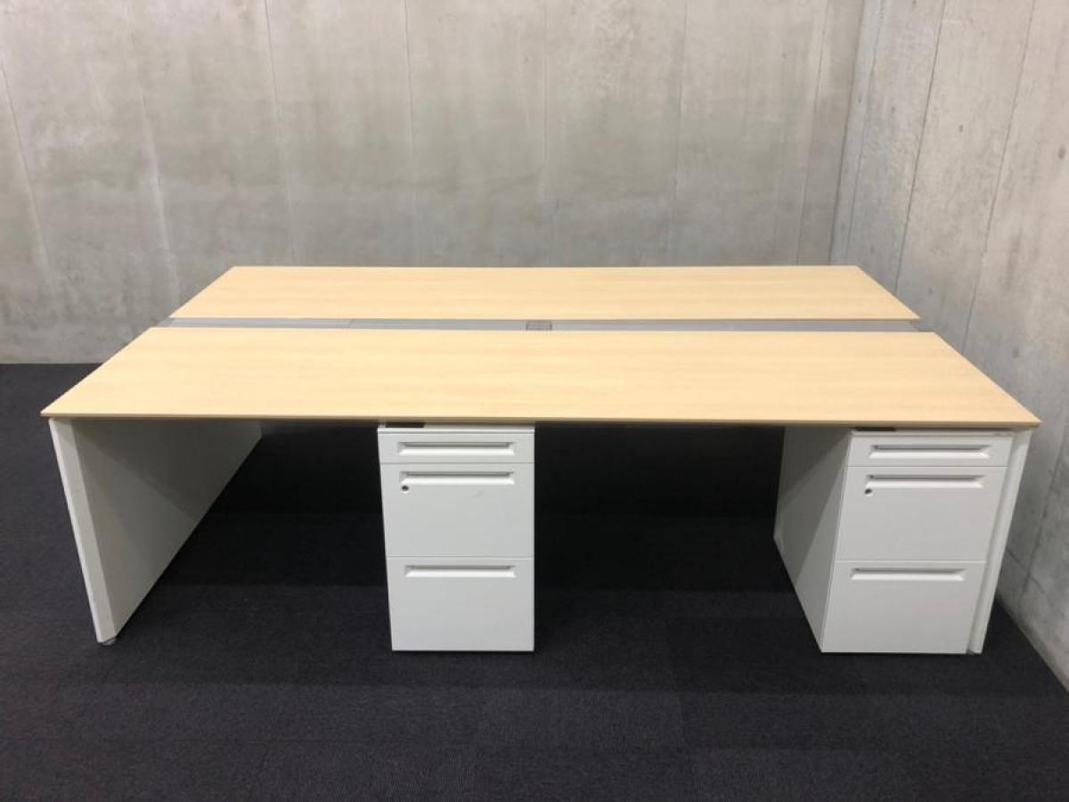 【倉庫在庫品】【W2400】/フリーアドレスデスク/オカムラ/フリーウェイ/天板ナチュラル/4名使用想定 中古 レイアウト 起業 移転 オフィスバスターズ神戸店