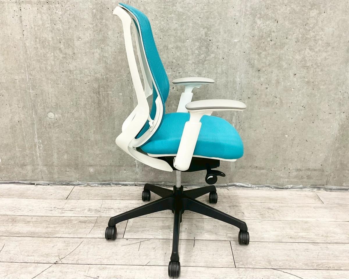 【新品ヘッドレスト交換済み】オカムラ/シルフィー/ブルー/可動肘