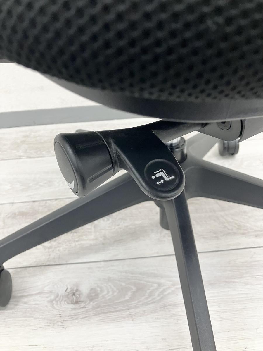 - 座面右下のダイヤル操作で、リクライニングの強弱調整が行えます。これまでのダイヤル式よりも、少ない回転数で、最弱?最強の調整が可能です。