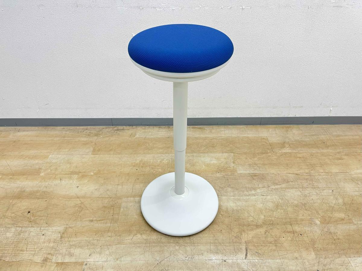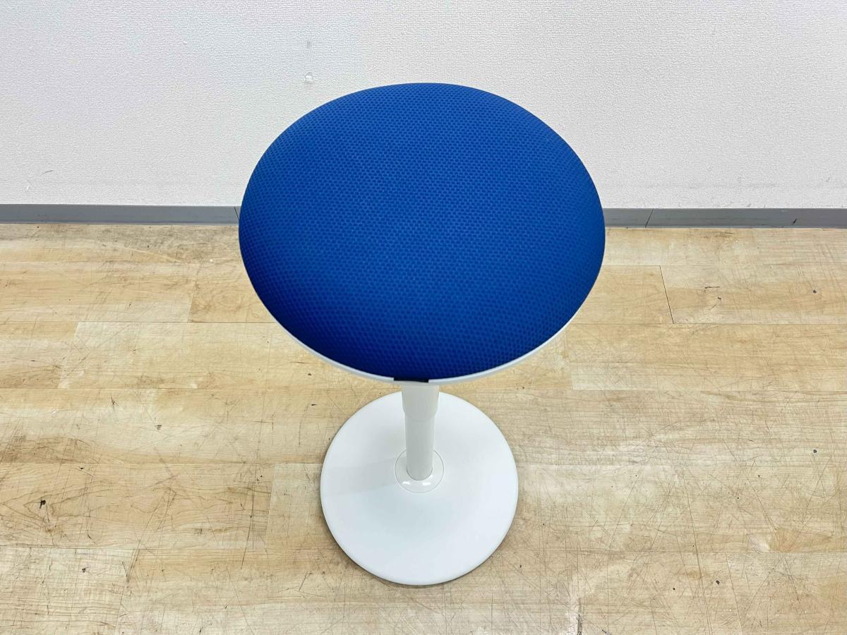 【「座る」と「立つ」のいいとこ取り!】■オカムラ(okamura) ピルエット(pirouetto) カウンターチェア スツール ■ブルー シェル:ホワイト【高さ調節可能なパーチングスツール!】〈岐阜・愛知・三重・静岡・福井〉- 岐阜店