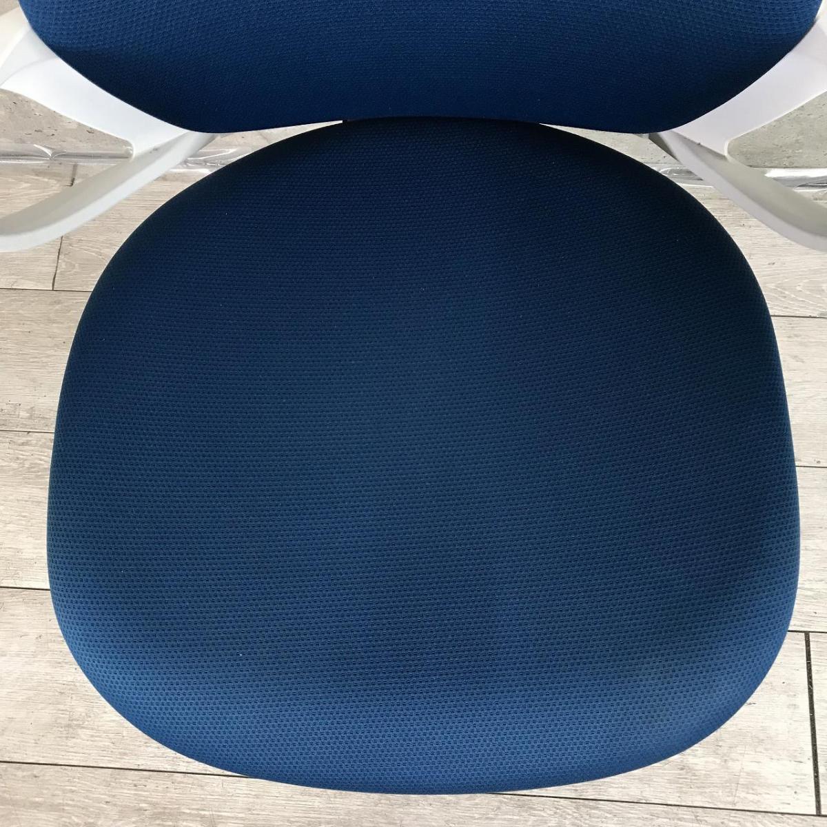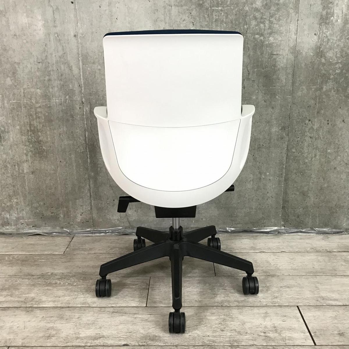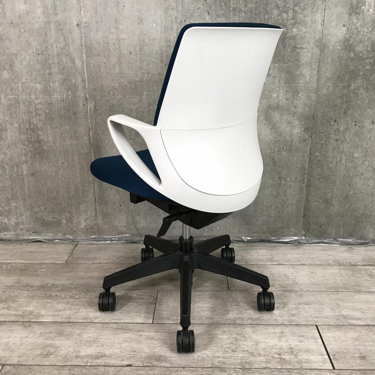 【デスクにスッキリ収納できるコンパクト設計!スマートデザインで使い勝手抜群!】■コクヨ(KOKUYO)製 ピコラ(picora)チェア 肘付き ローバック ■サークル肘 ■プルシアンブルー×ホワイトシェル×脚ブラック※背面日焼け有