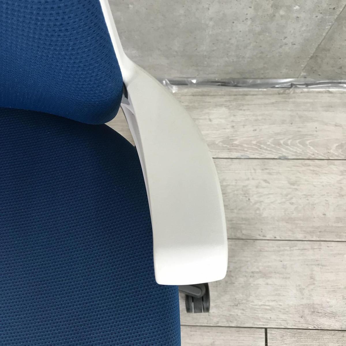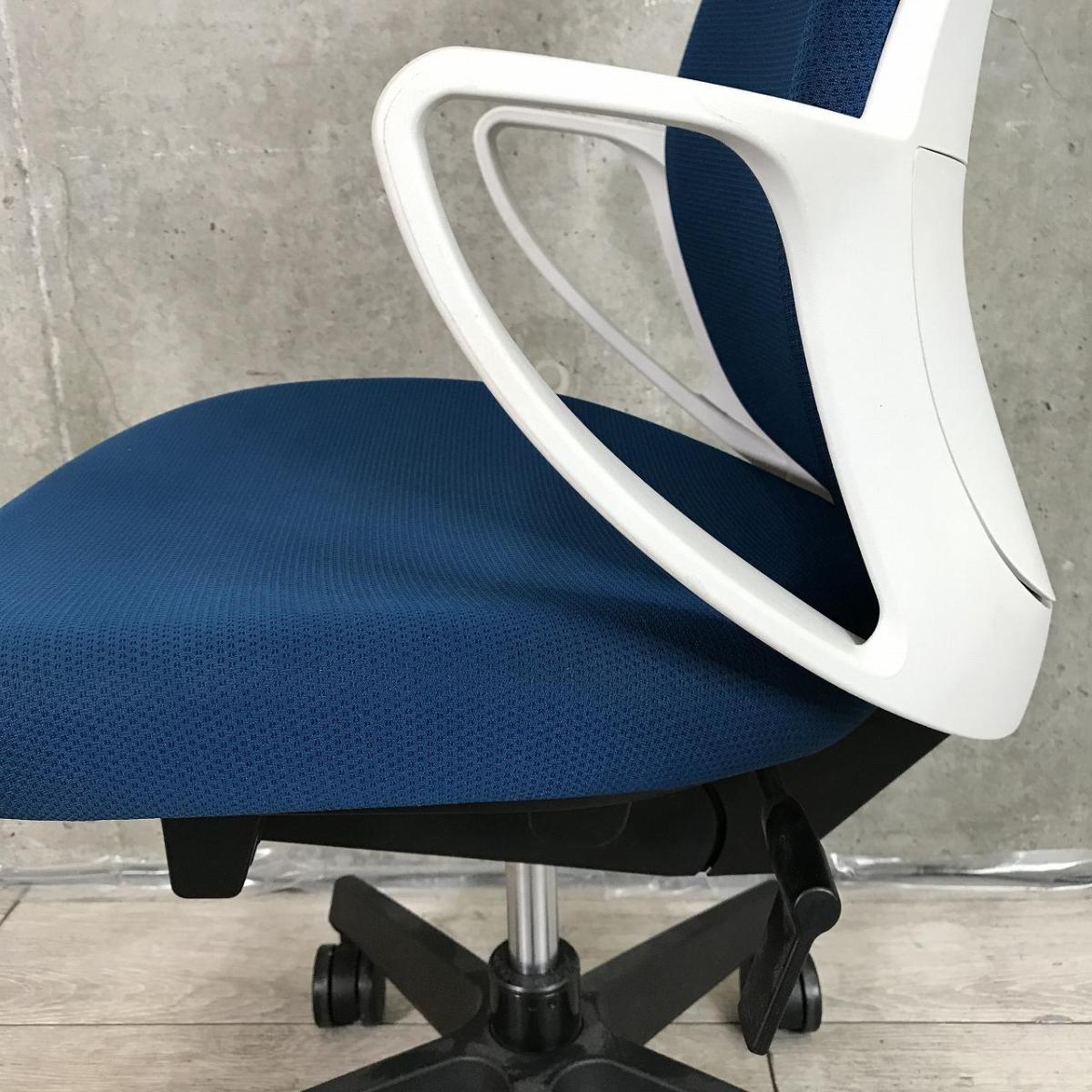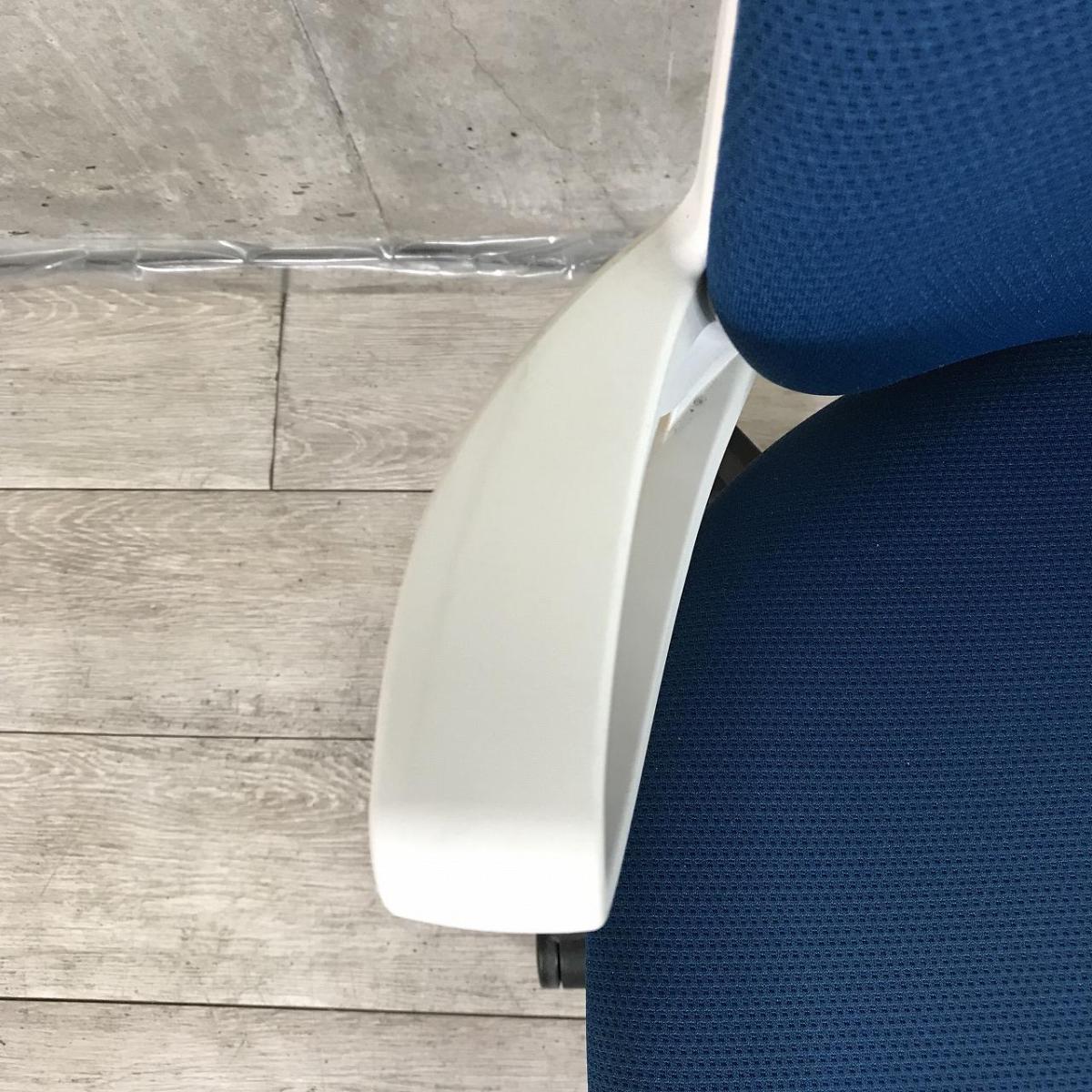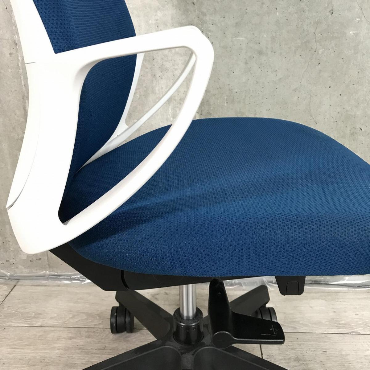 【デスクにスッキリ収納できるコンパクト設計!スマートデザインで使い勝手抜群!】■コクヨ(KOKUYO)製 ピコラ(picora)チェア 肘付き ローバック ■サークル肘 ■プルシアンブルー×ホワイトシェル×脚ブラック※背面日焼け有