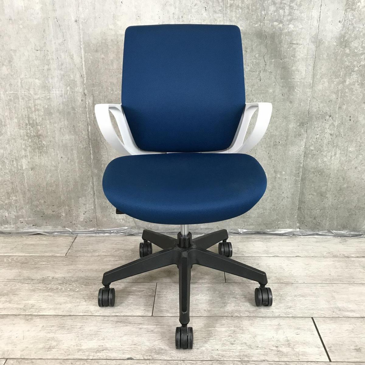 【デスクにスッキリ収納できるコンパクト設計!スマートなデザインで使い勝手が良し!】■コクヨ(KOKUYO)製 ピコラチェア(picora) 肘付き ローバック ■プルシアンブルー × ホワイトシェル 脚ブラック- 名古屋本店