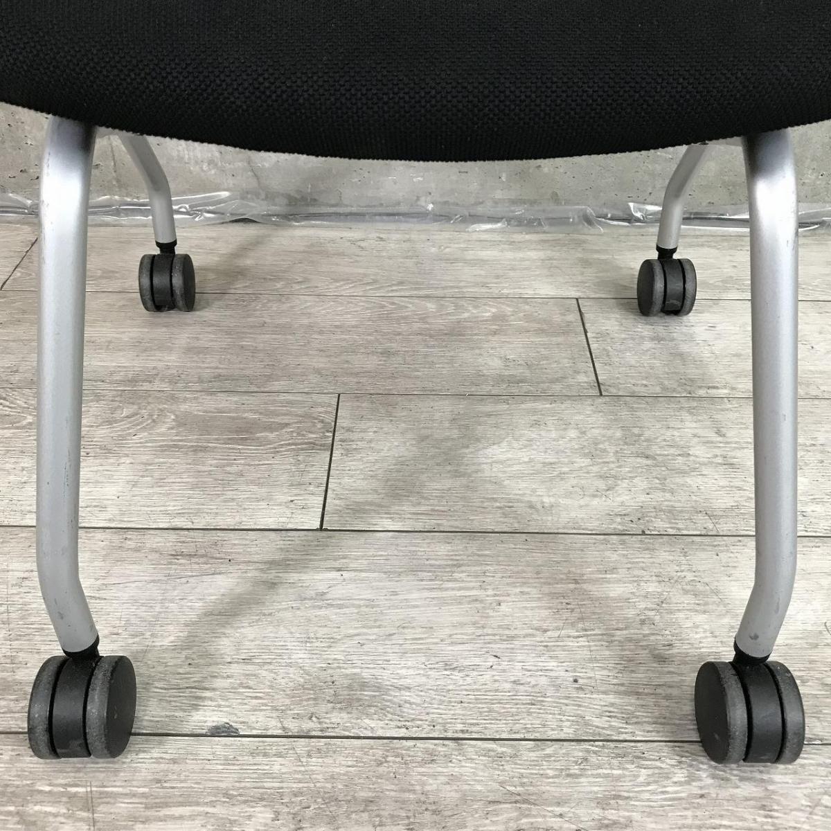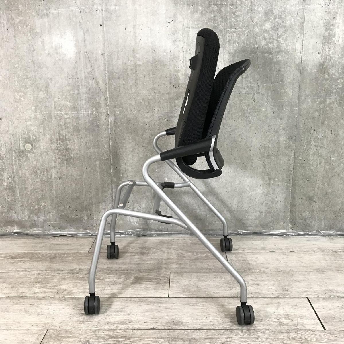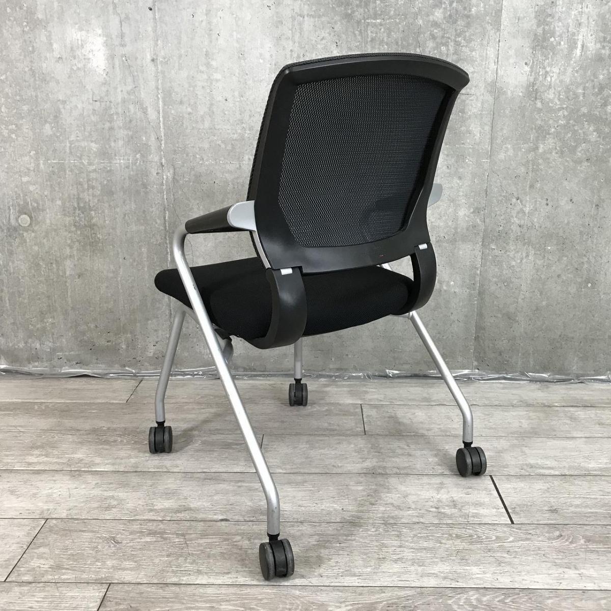 【会議室におすすめ!折り畳んで横に重ねて収納可能!】■コクヨ(KOKUYO)製 サテリテ(Saterite)チェア ミーティングチェア スタッキングチェア 会議用 背面メッシュ ■固定肘 ■キャスター付 ■ブラック【移動も楽々!】- 埼玉本店