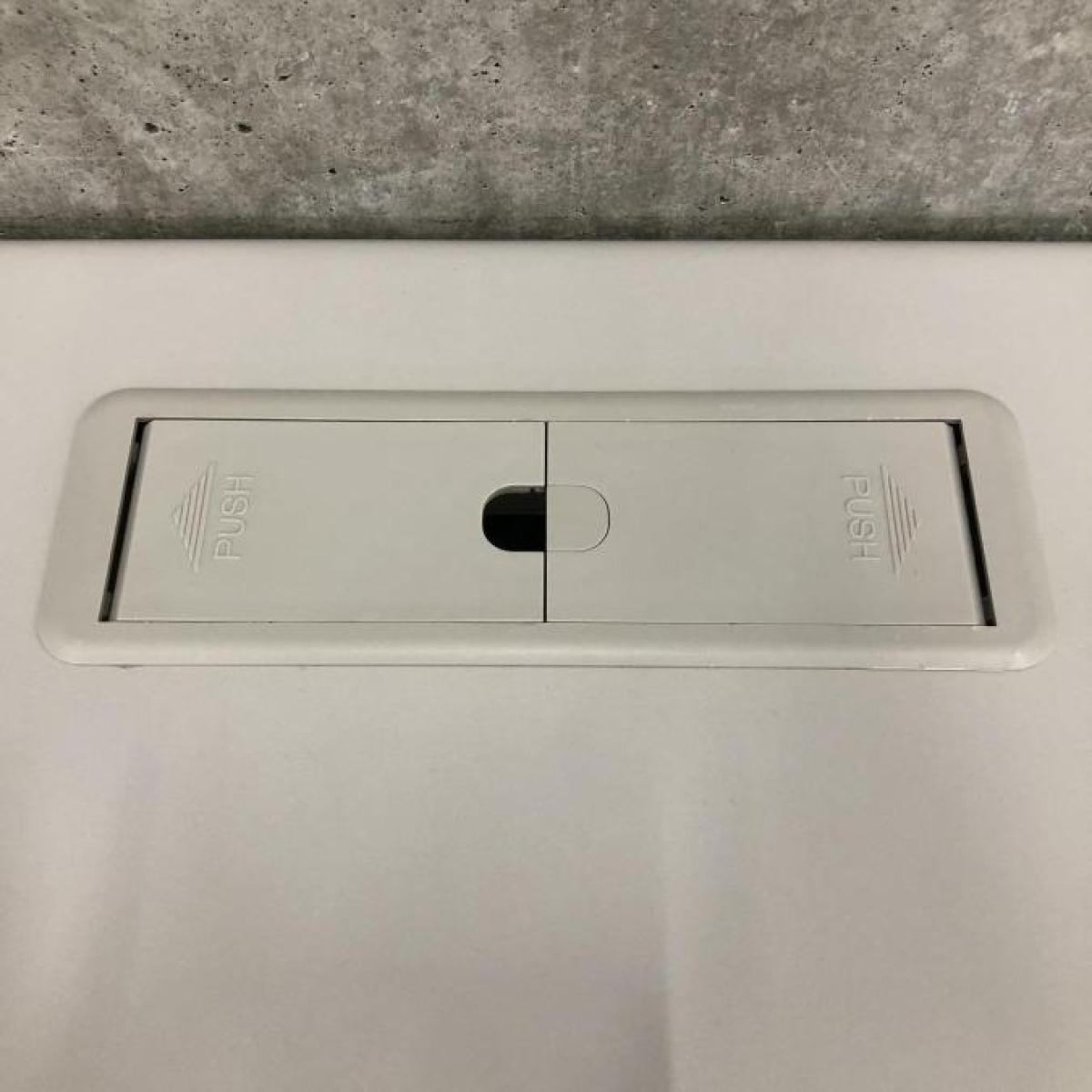 配線取り出し口が天板奥に2か所あり、