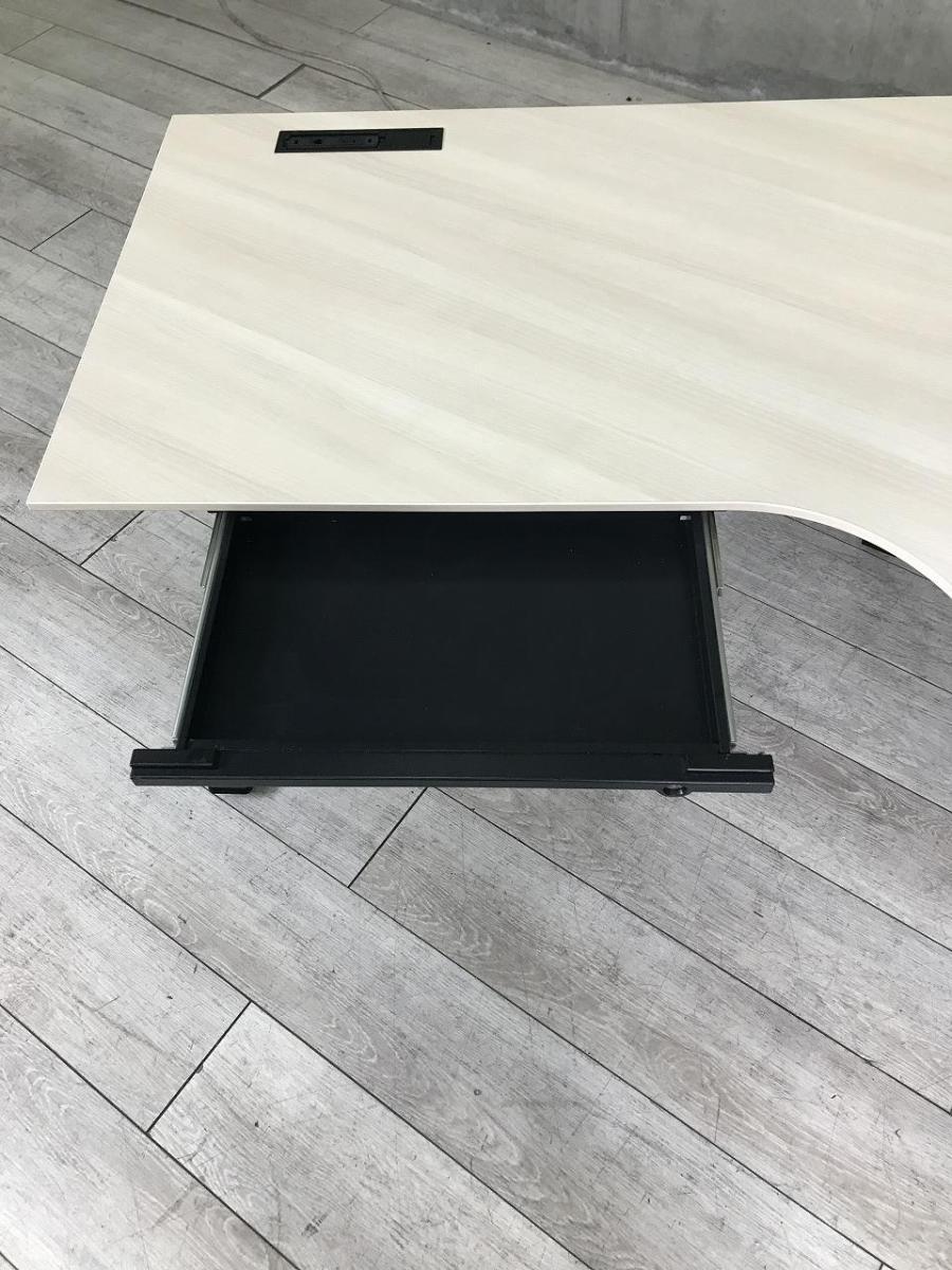 【立ち姿勢と座り姿勢を交互に取り入れることで負担軽減!】■オカムラ製(okamura) スイフト(swift) ブーメランテーブル ■引き出し付き ■昇降 H650~1250 ■木目調ナチュラル 【ABW商品】【関東倉庫在庫品】【弊社使用欄:A01037665】- 全店共通商品