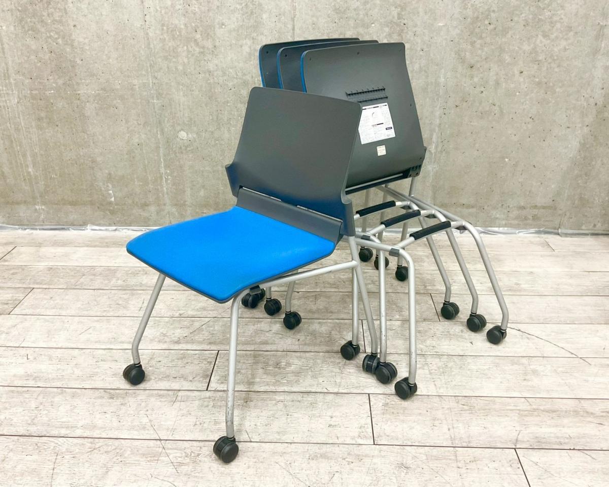 【4脚セット】【スタイリッシュなデザインで簡単収納!】■コクヨ(KOKUYO) フィットスタック(Fitstack) ネスティングチェア 肘無し ■キャスター付き ■ブルー【弊社使用欄:A01039505】- 錦糸町サテライト