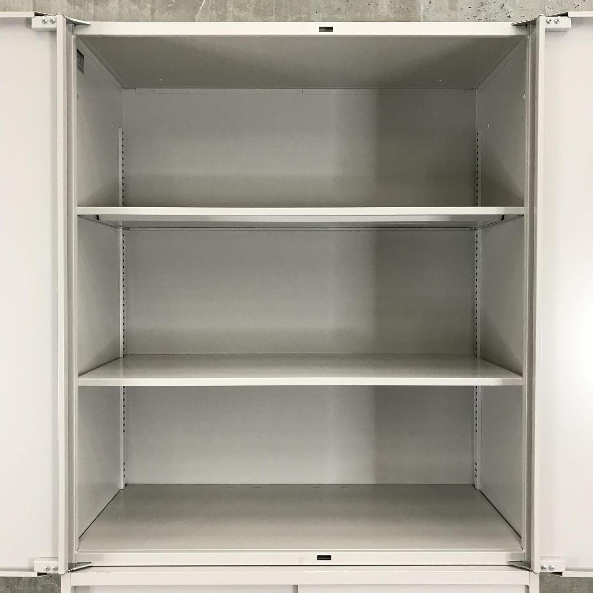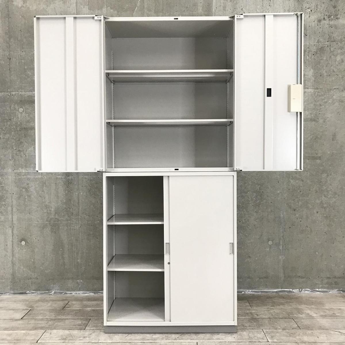 【すぐ取り出したいものはオープンへ保管用などは両開きへ!使い分け可能です!】■イトーキ製 シンラインシリーズ 上下戸書庫セット(上:オープン 下:両開き) ニューグレー 《オフィスバスターズ福岡博多店は、福岡を拠点として、日本全国へ中古オフィス用品・オフィス家具を提供しております》