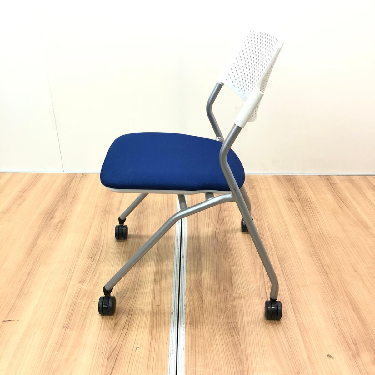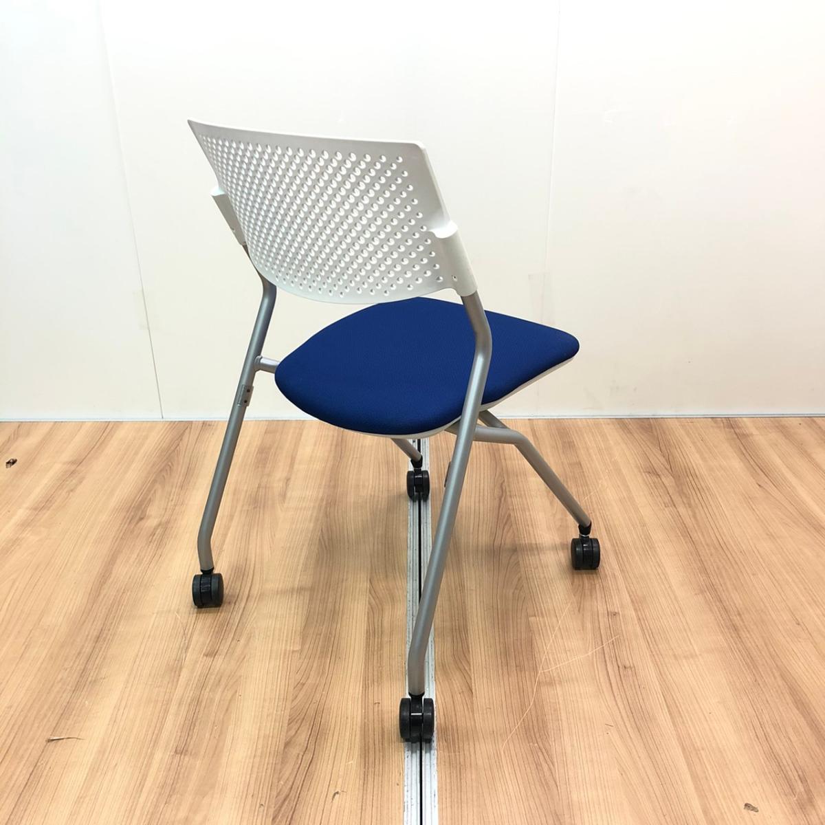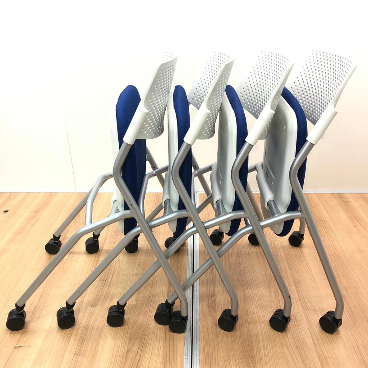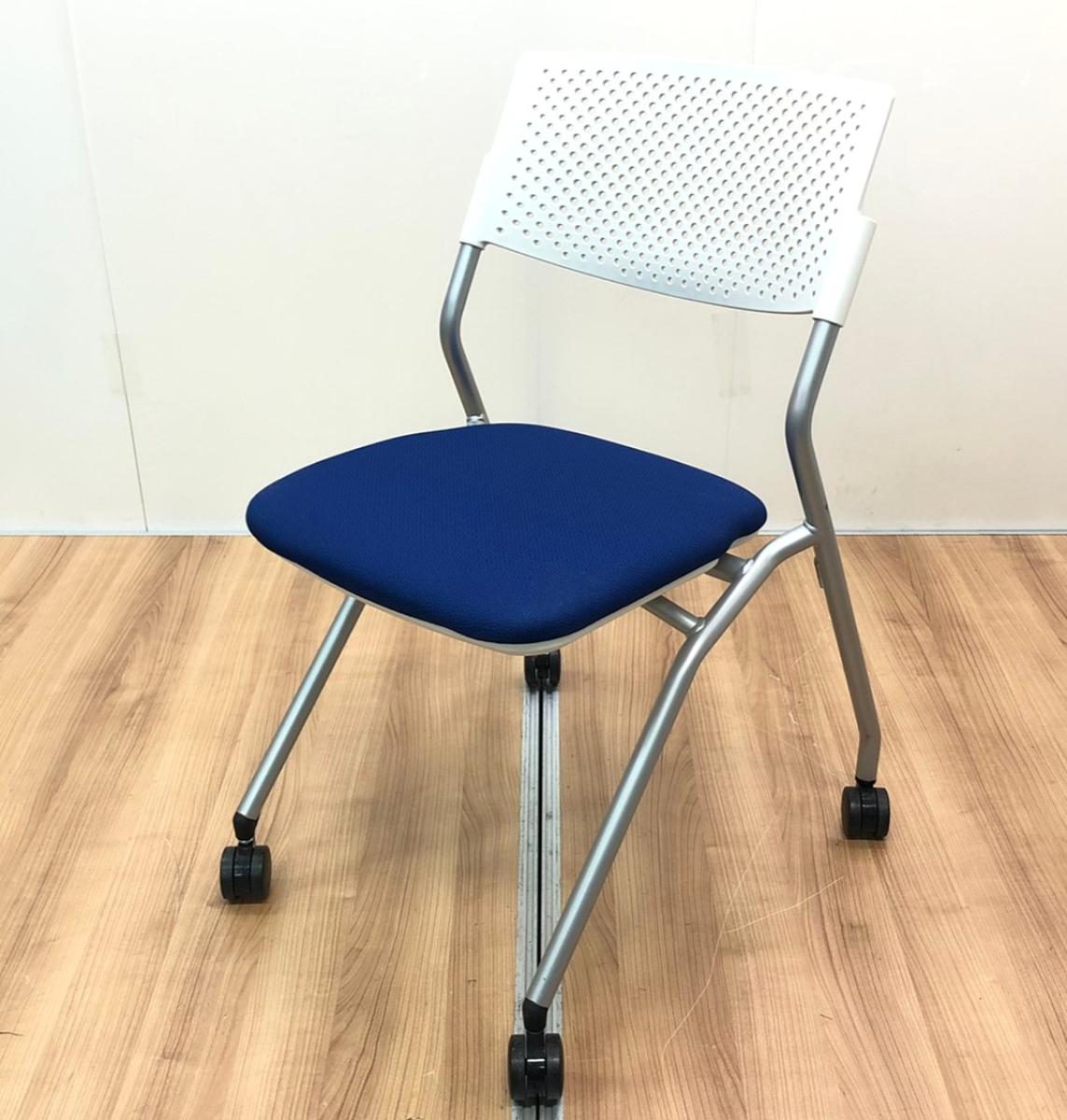 【6脚限定】【在庫入替品】【スタイリッシュなネスティングチェア!シンプルデザインで様々なミーティングシーンにぴったりフィット!】■ウチダ(UCHIDA)製 FM265 ネスティングチェア ■座面ブルー×ホワイト背面 ■キャスター付 ■背面樹脂メッシュ オフィスバスターズ 梅田本店【T9】